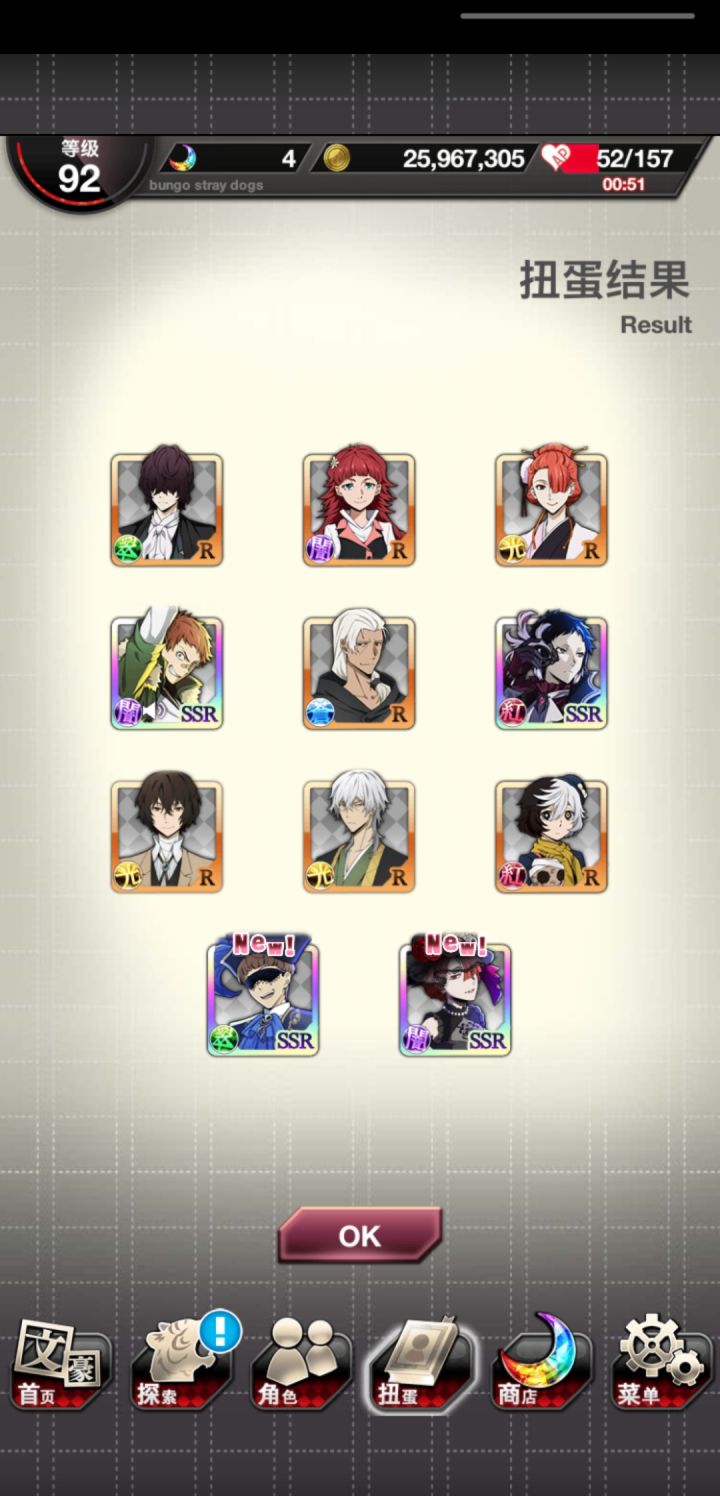 啊,说起来废弃线路和闪光弹都是在我续费会员的当天出的,废弃线路时乱步大人连送了三次石头,闪光弹出来后乱步大人给了五个石头。