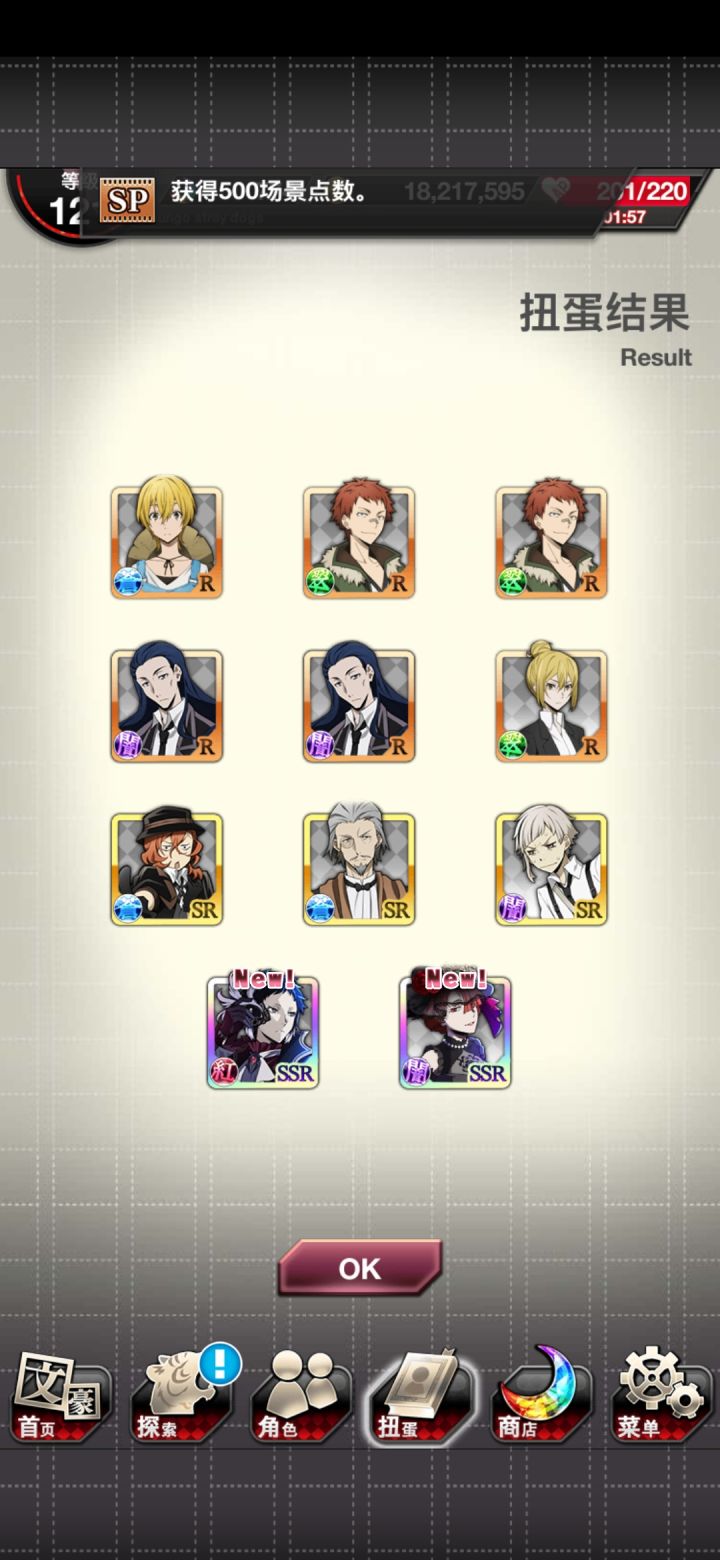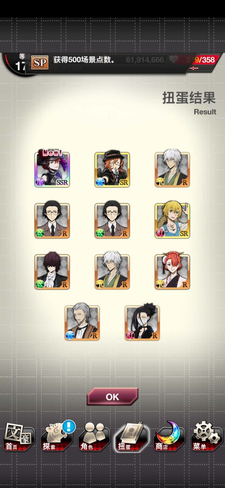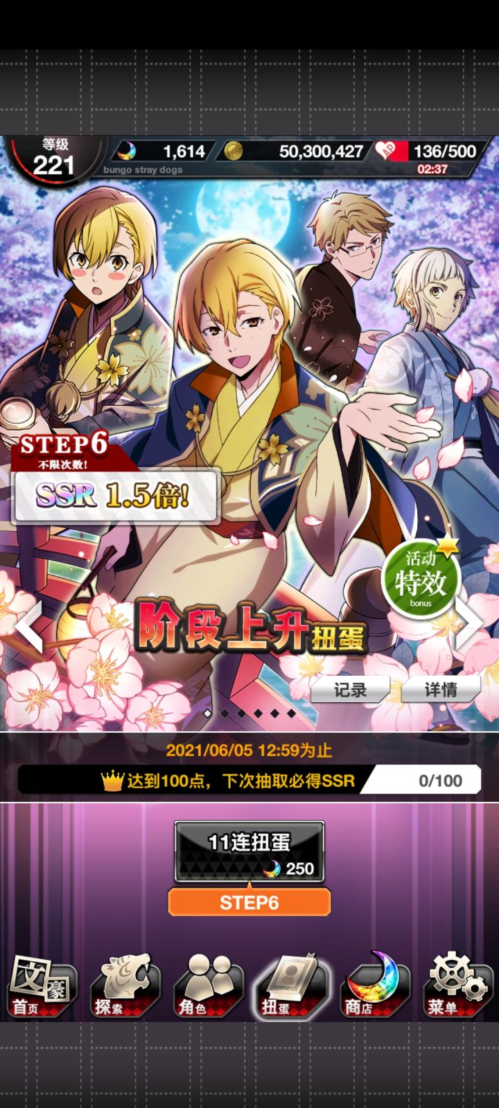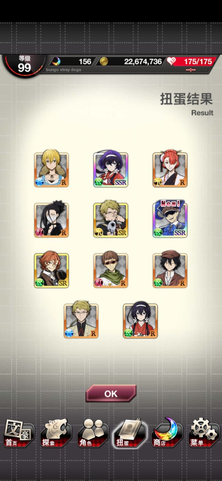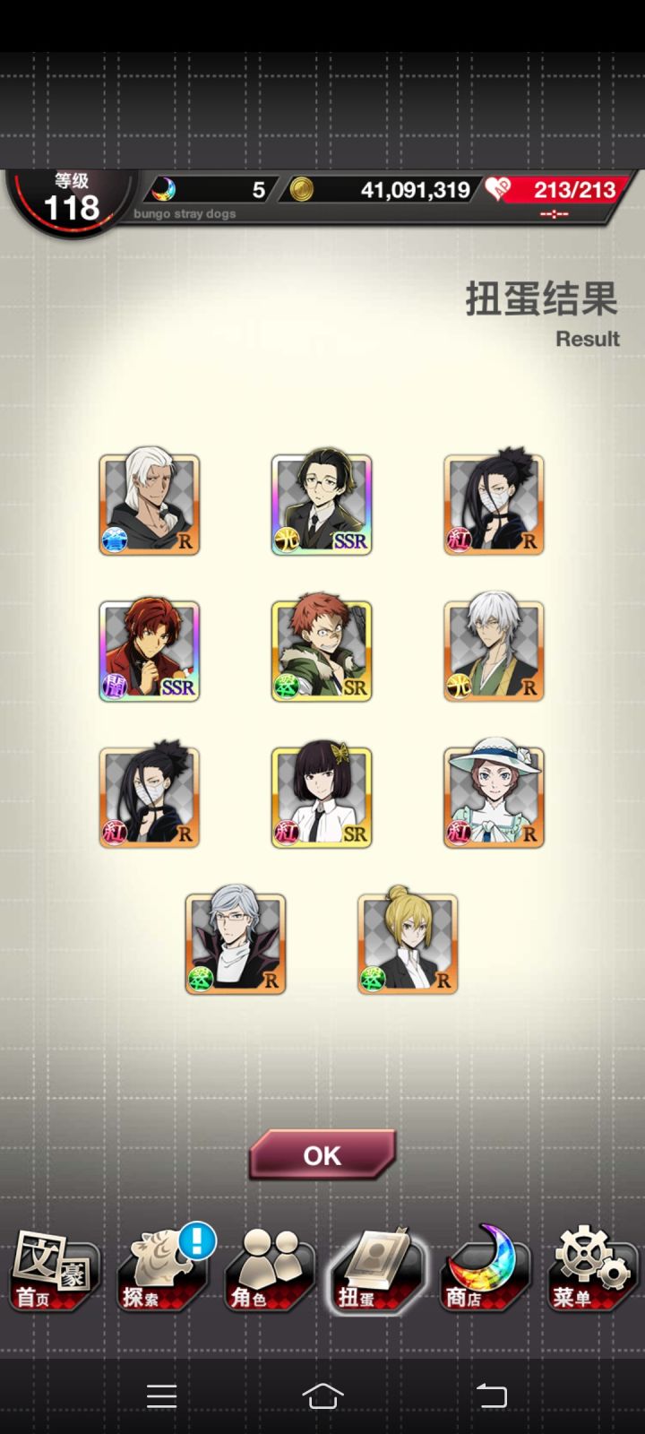 虽然但是,就没有哪把能把角色卡抽完整的,再给个贤治让我换个特别形象也好呀,结果就两个贤治两个国木田,技能强化了作用也不大,这一言难尽的