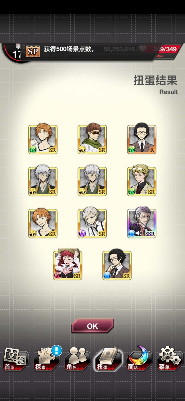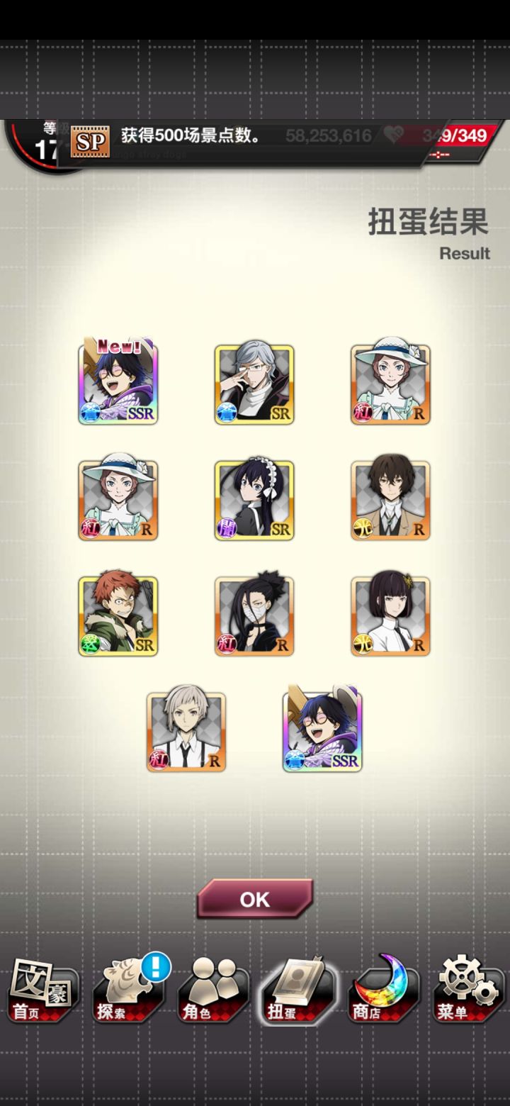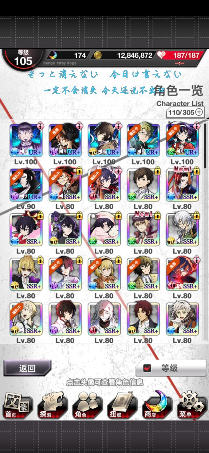 论孩子回家打开游戏就看到太宰先生和乱步先生新卡新活动是什么感受,反正非常激动直接就冲了微信号s3小号s2一本满足,想要的都有,直接收手。大号1600等太宰先生的新卡,好耶。再次感谢官爸和神明大人