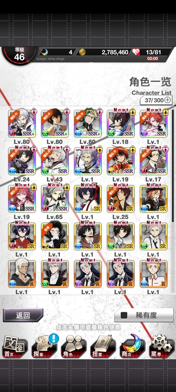 s2贤治s3乱步s5国木田 不捞太宰了(日服台服只有宰)中秋过了想打566……
