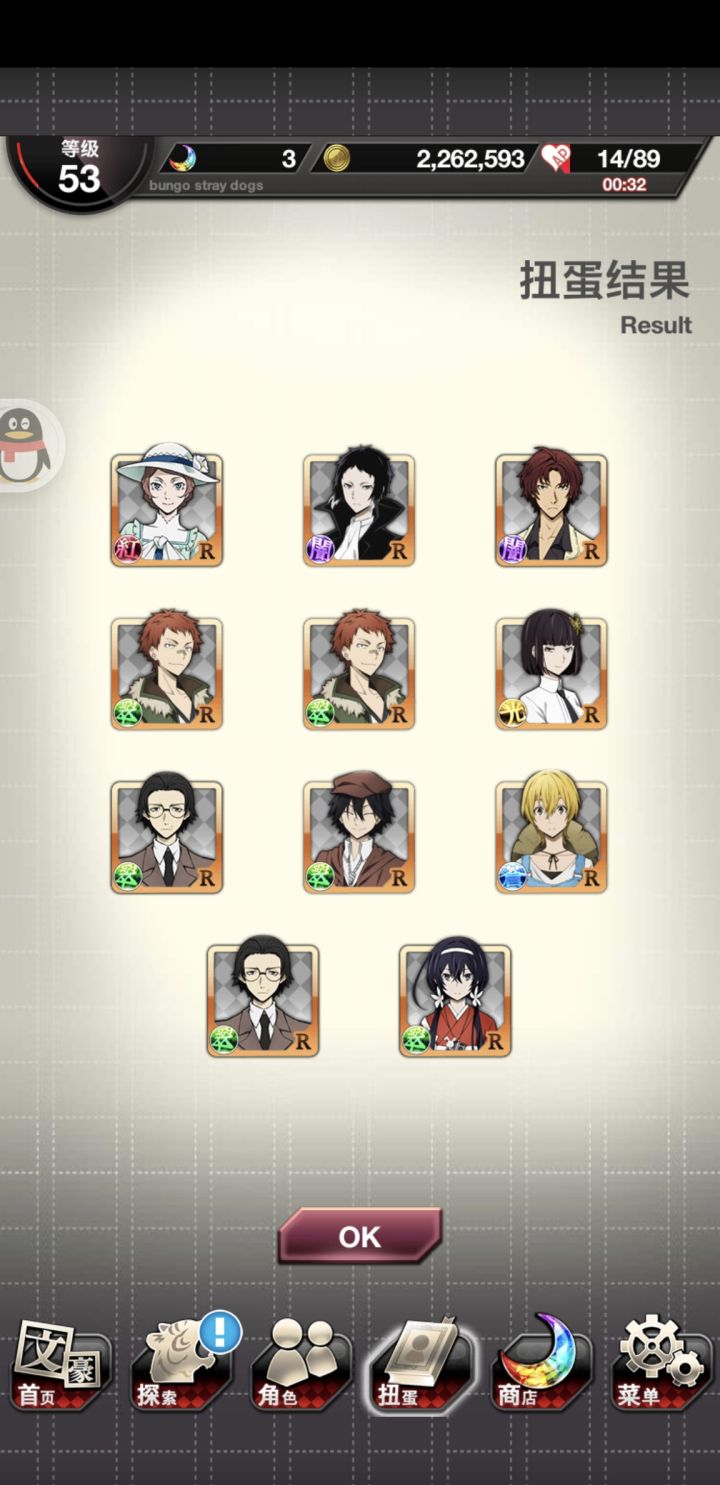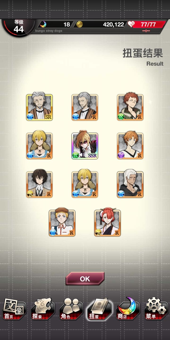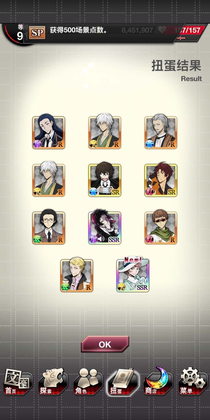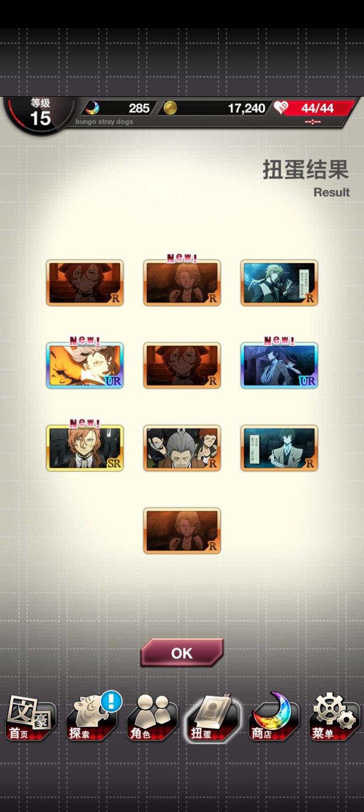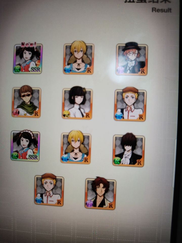 如题,新号50级,一千石,所以我去抽了第一发十连好耶,收手。然后开始馋异能,一发十连银酱新卡,好耶(虽然想要太宰先生),果然新号就是欧