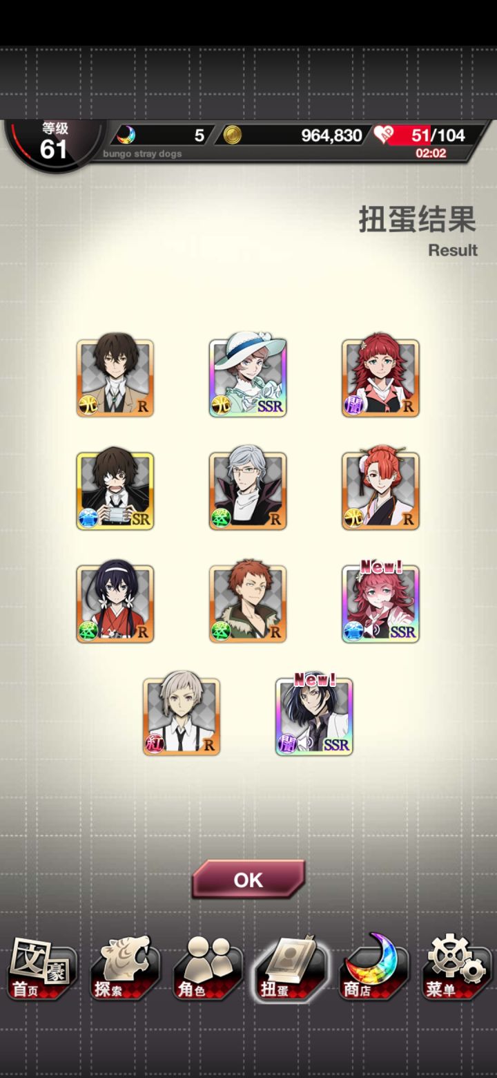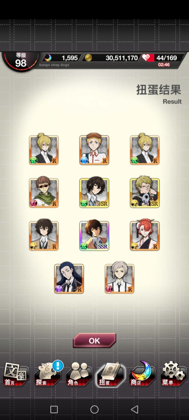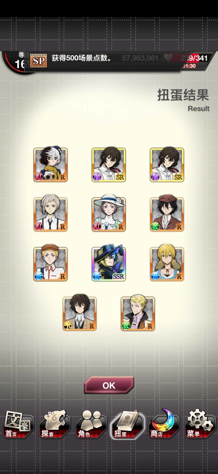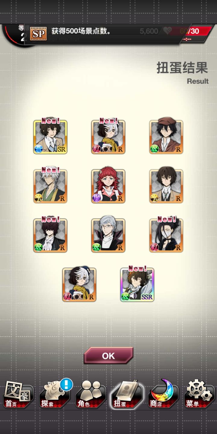 换了个二级小号抽抽,五百石头砸进去就抽到了我最想要的太宰!!!哭,我从来不玩小号,抽到了跟没抽到似的(╥﹏╥)