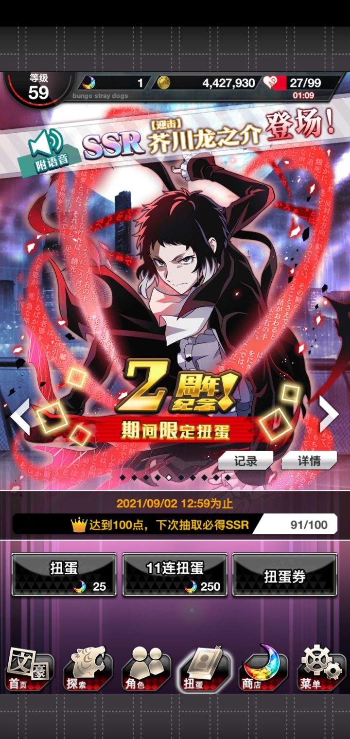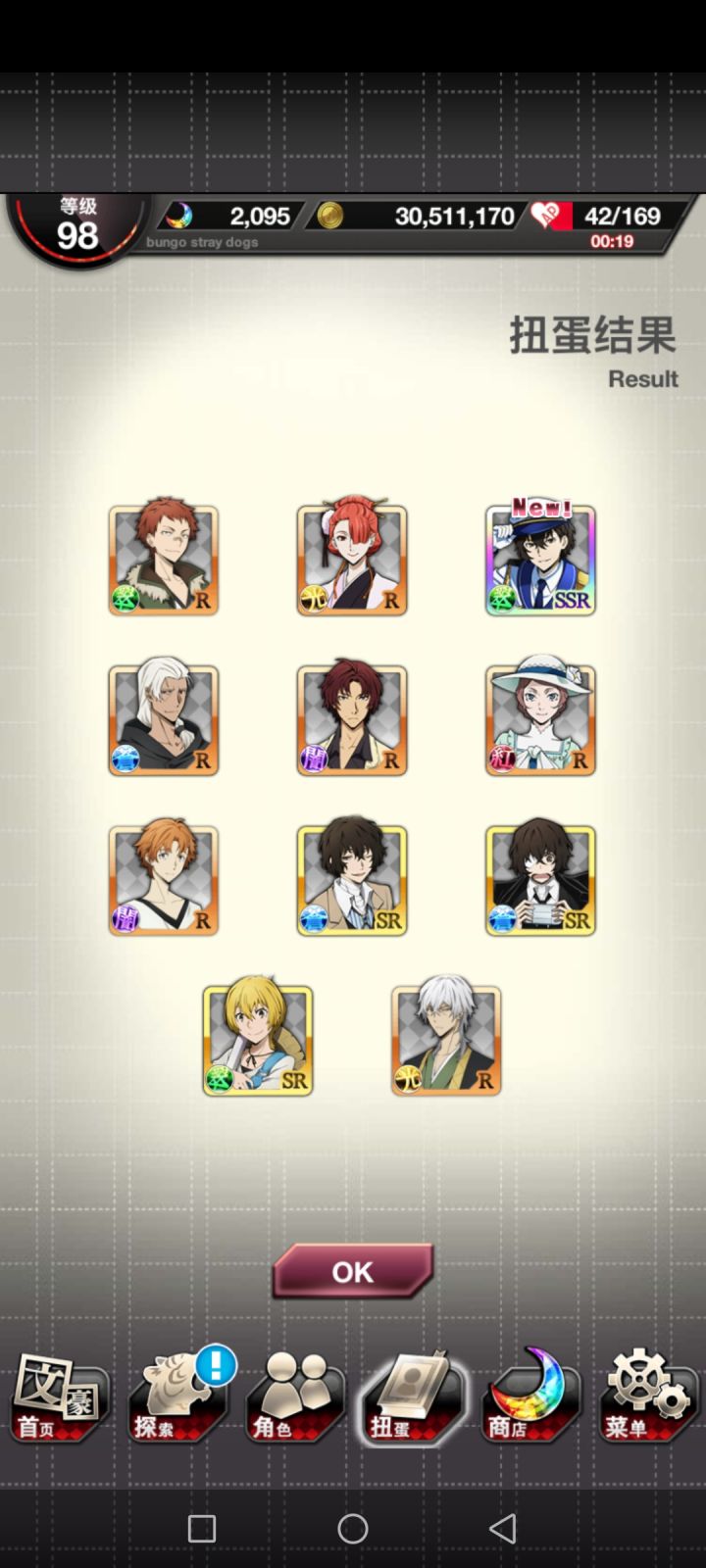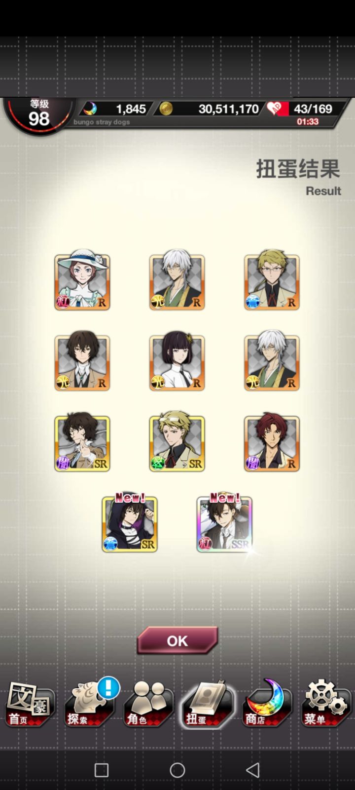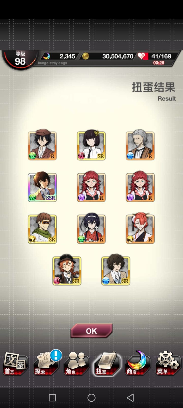 换了个二级小号抽抽,五百石头砸进去就抽到了我最想要的太宰!!!哭,我从来不玩小号,抽到了跟没抽到似的(╥﹏╥)