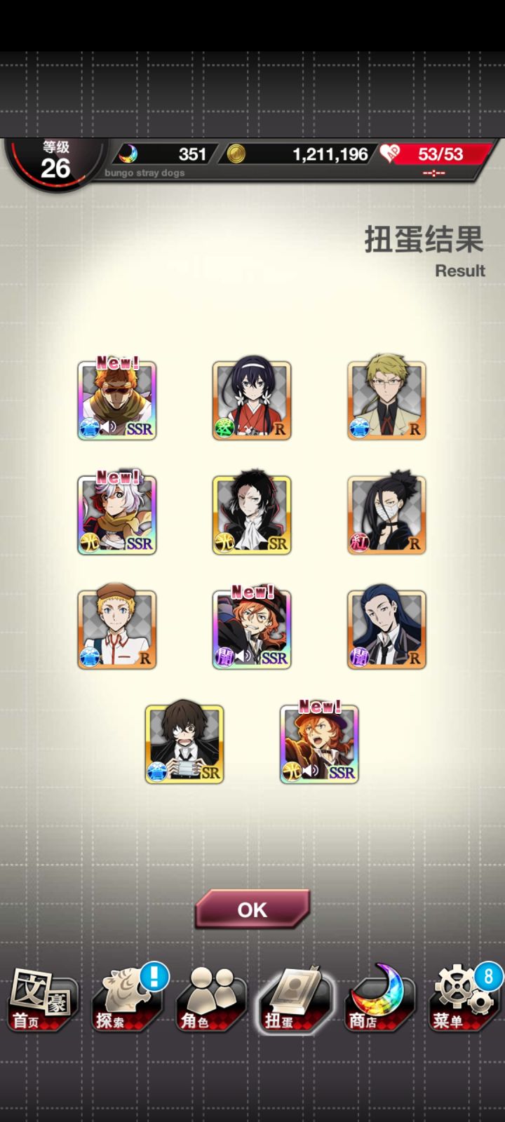 太宰池太棒了!!!感谢四时雪朋友的祝福!!!连续4个10连出宰,虽有重复,但是实实在在的4个ssr呀,近期唯一欧的时刻真香,收手了