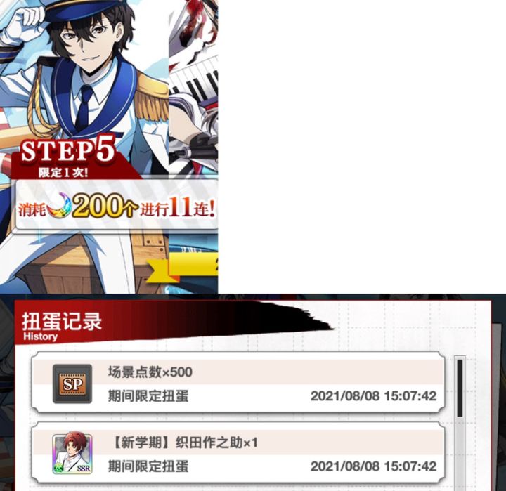 还差两步就能强娶了,顽强微笑从一开始的两个ssr(封面上除了宰的其他两张卡)到现在的之助,说实话,这张卡出来的时候我都傻了,有这张卡???这个池子有这张卡???好家伙,还真有……
