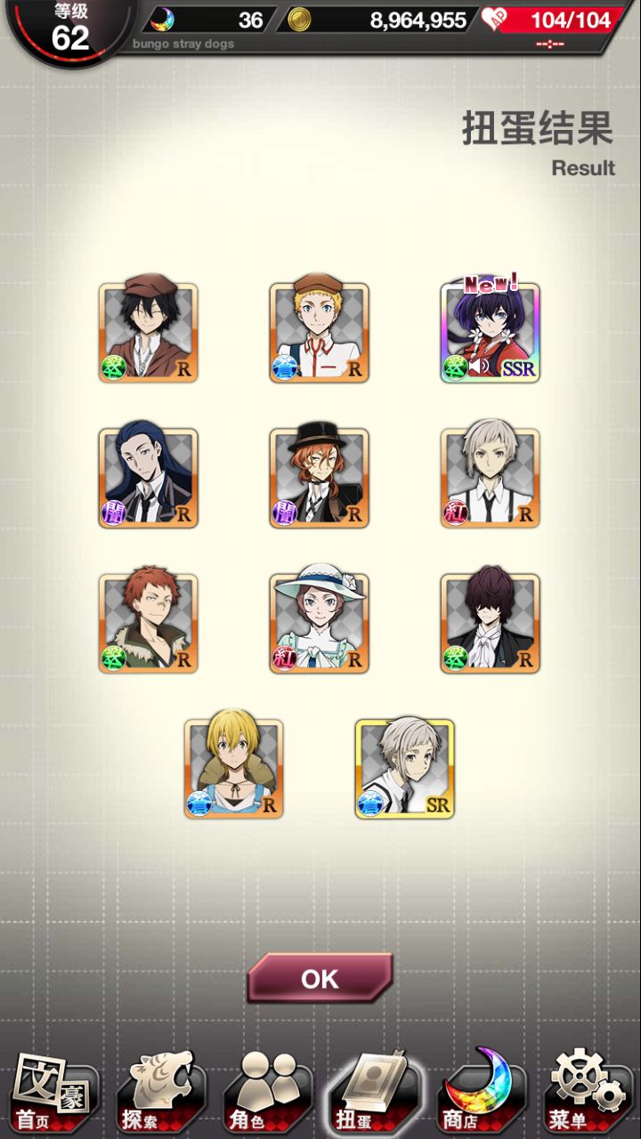 三人沙发玄学灵验了!!本来只是想看看持有素材,结果看见这个马上去抽了(正好刚打完一段主线够石头)s1就出了中也我快乐了中也这张卡好好看啊!而且还是我最缺的光系!今天一天多了两个,幸福来的太突然hhh