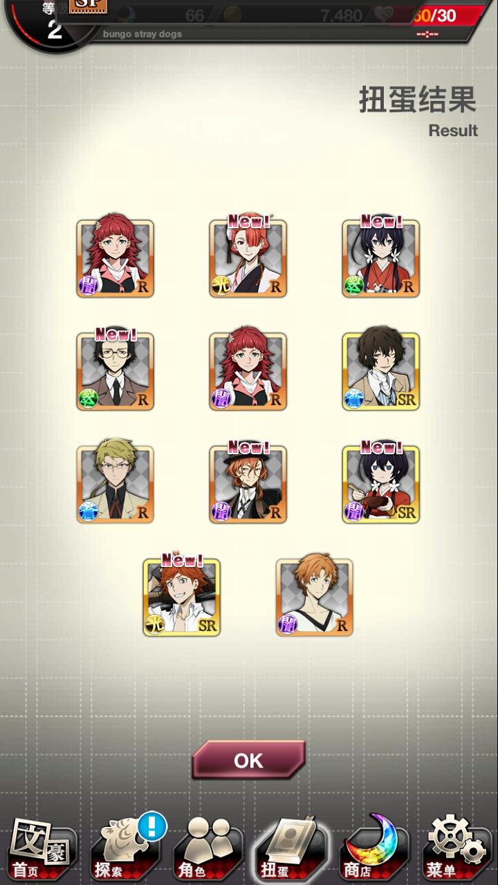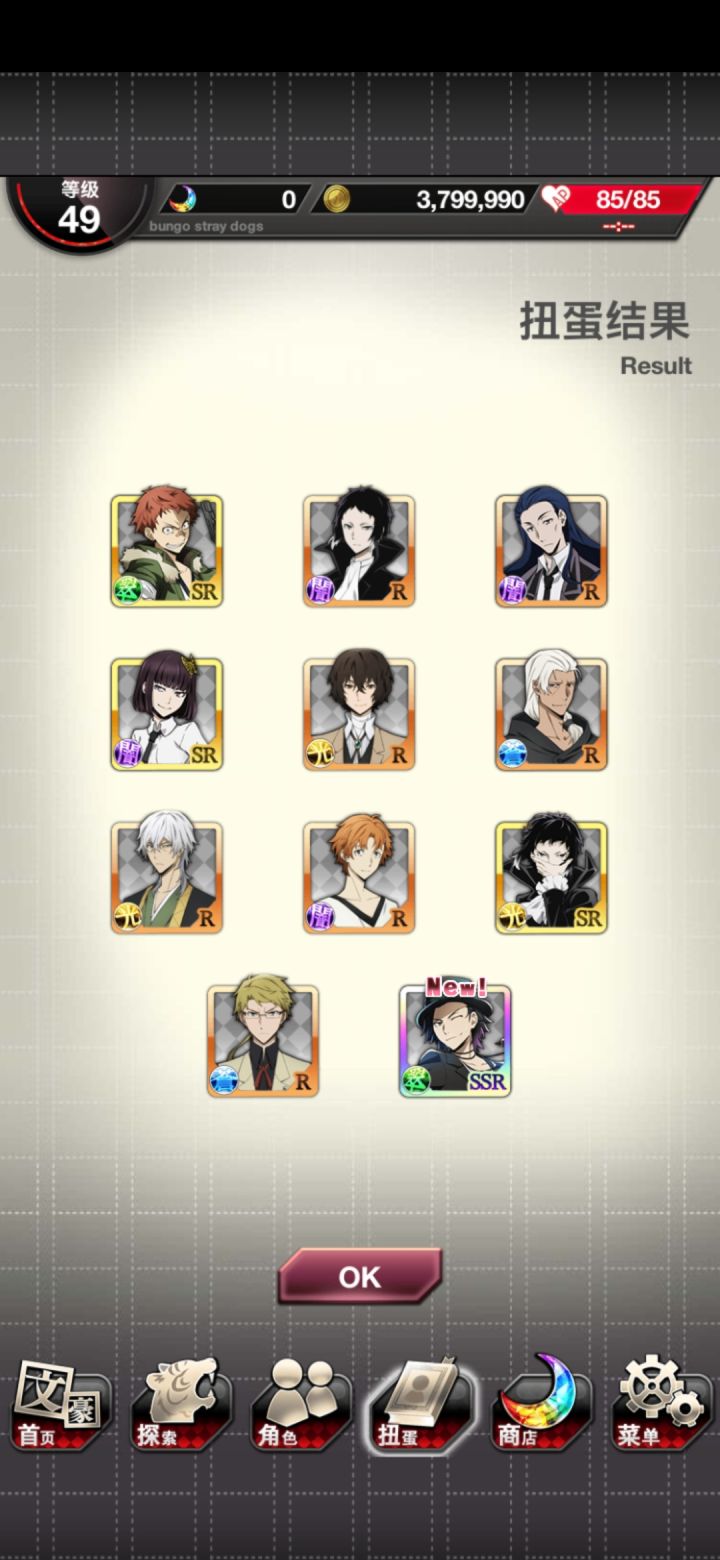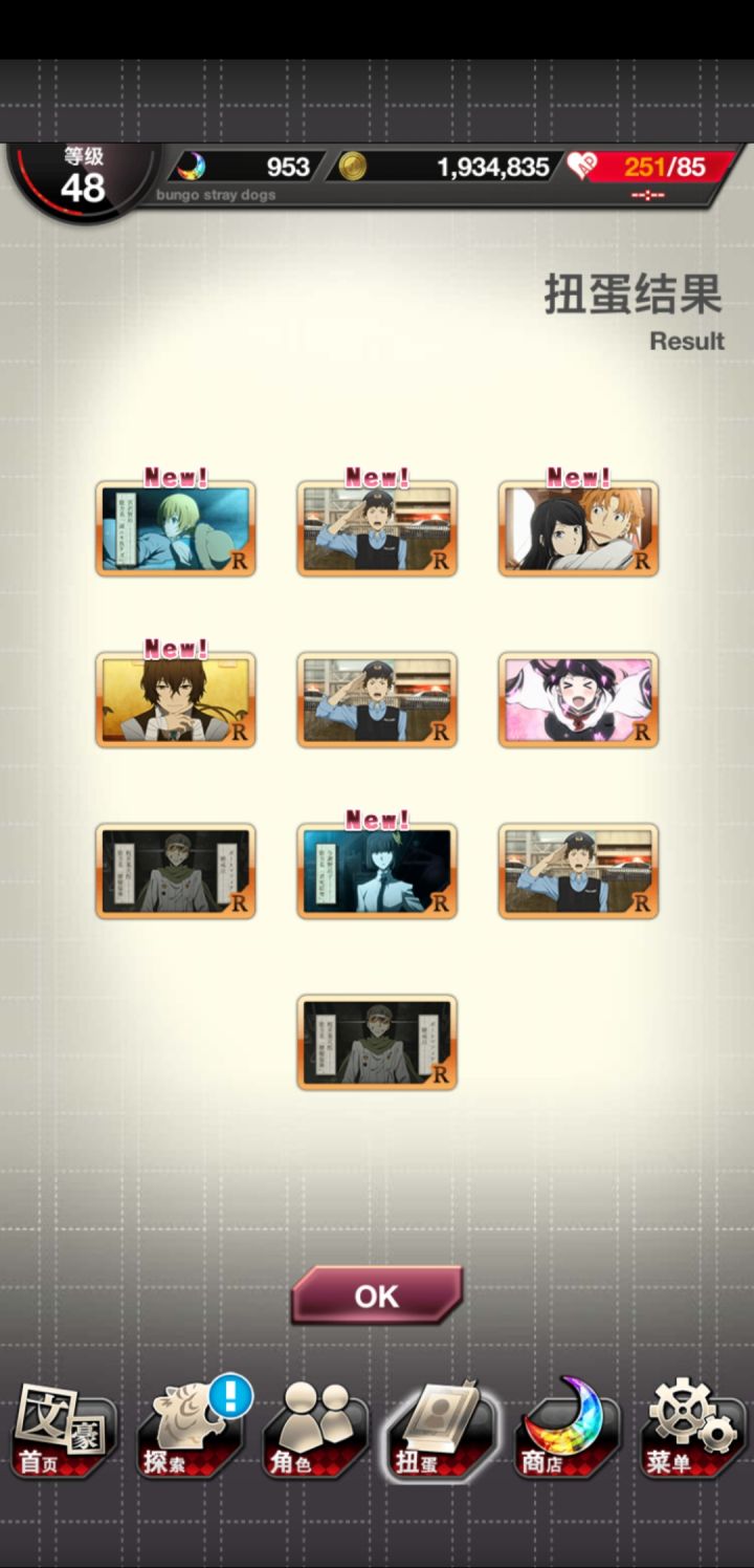 肝了好久✧*。٩(ˊᗜˋ*)و✧*。乱步是红月亮出的(说实话我还以为没有)敦和镜花与安妮是双黄蛋,弱弱的问一句如果要选一个角色选哪个好?