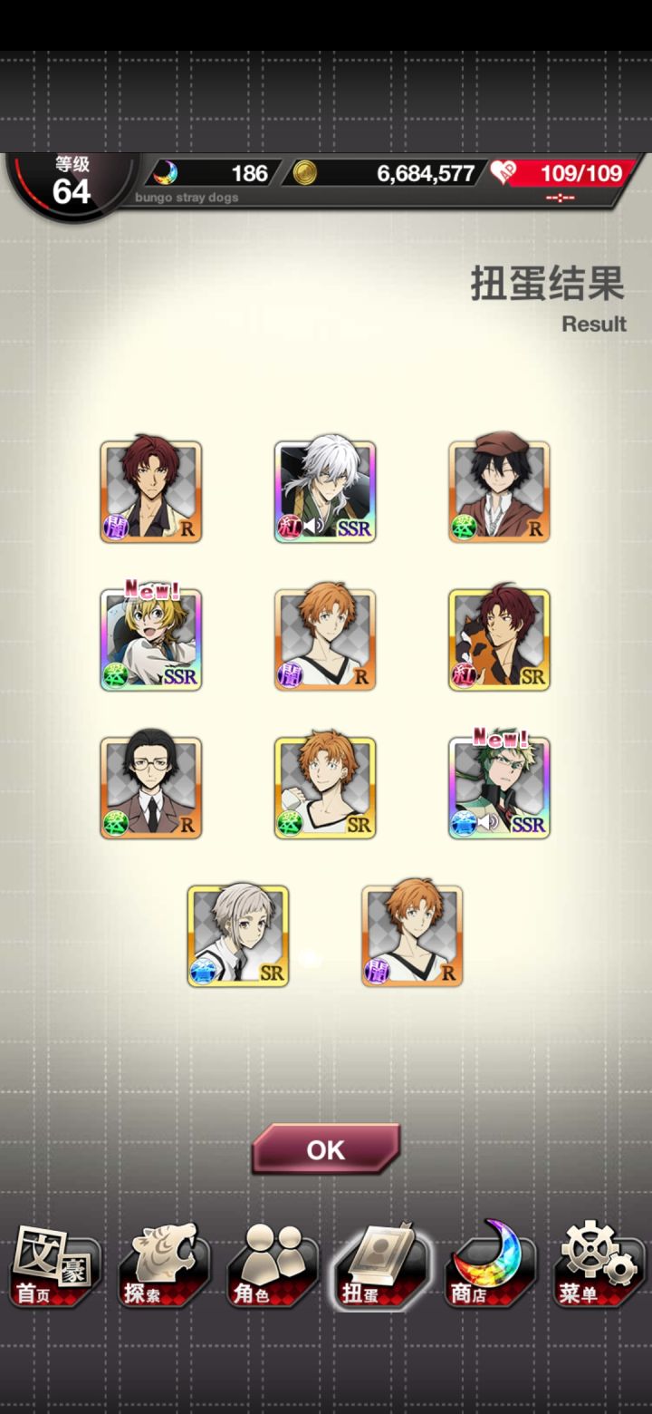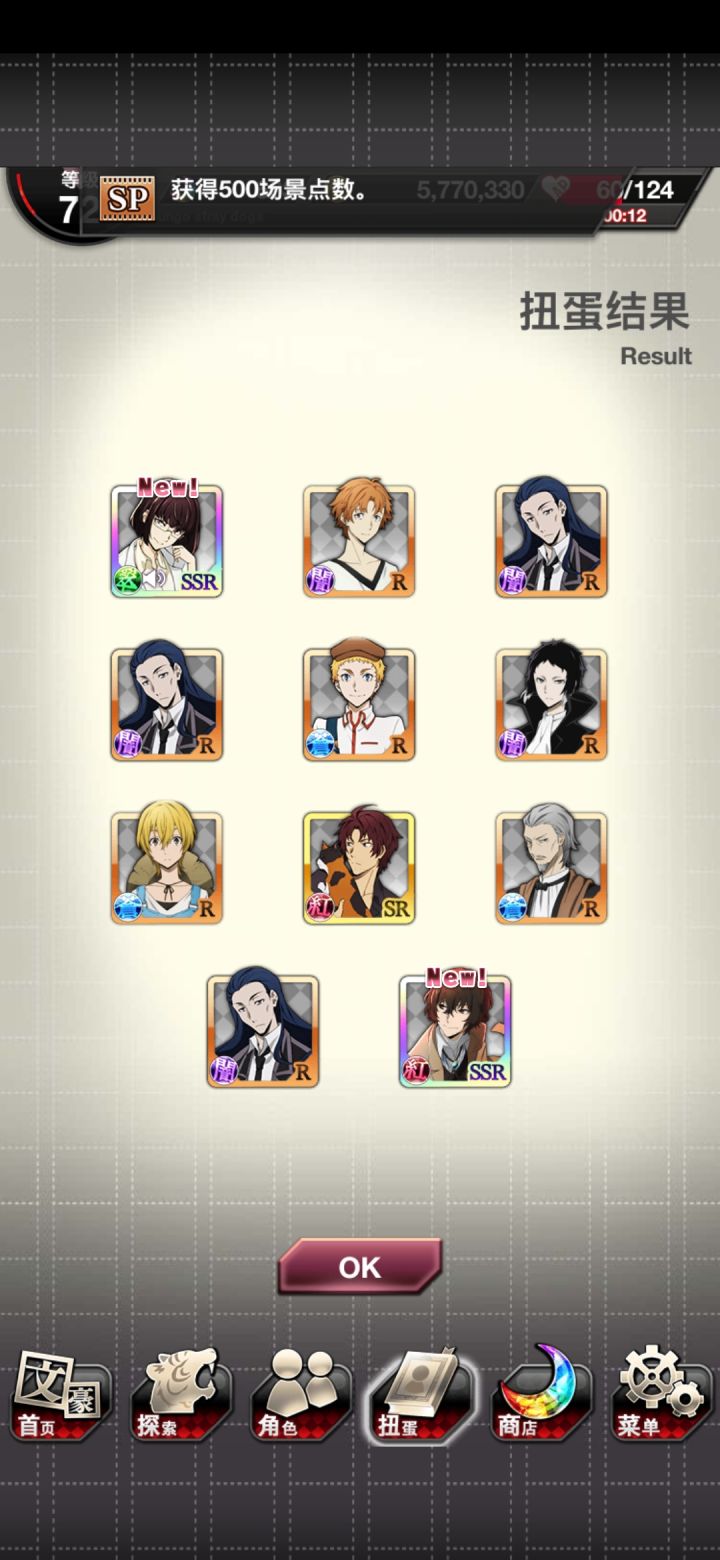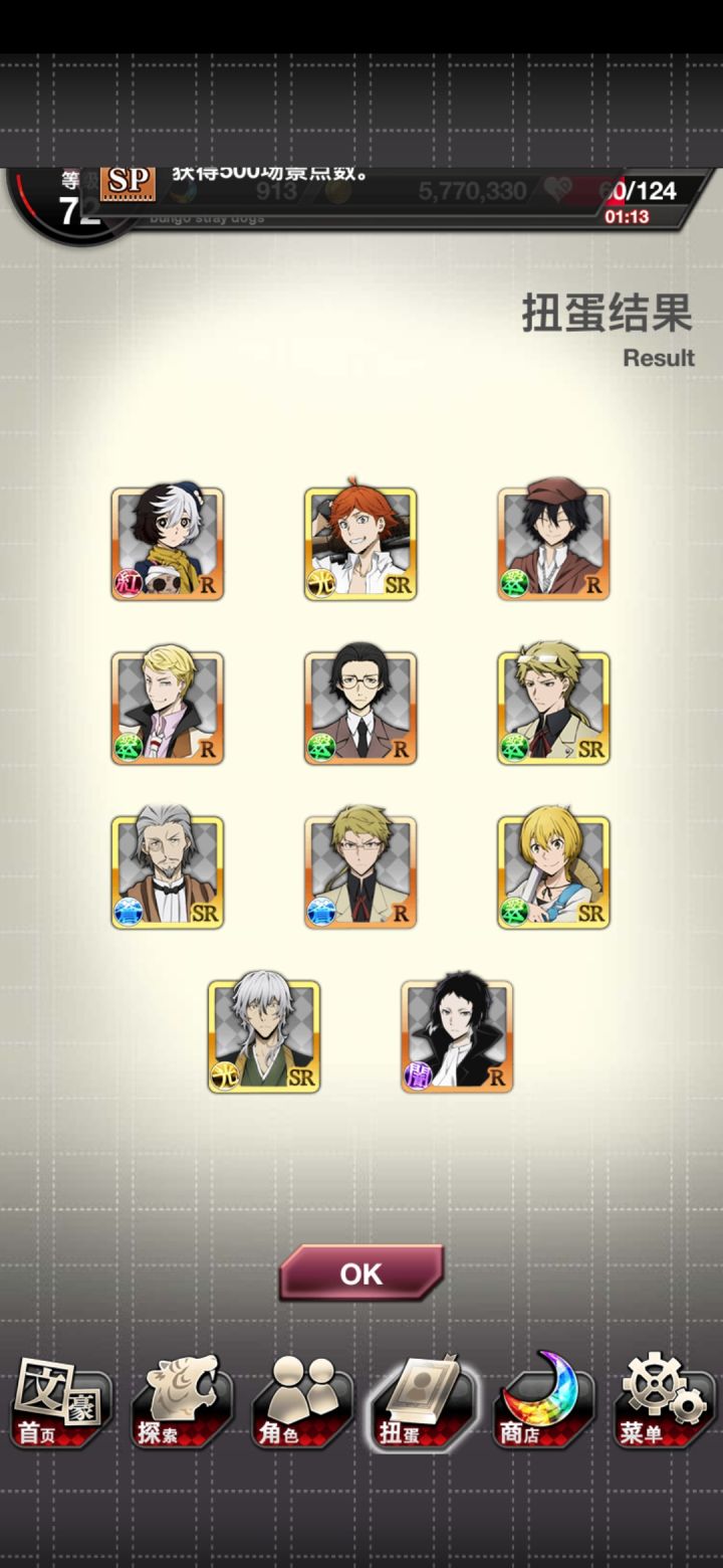 一共五发,第五发出了与谢野和宰,三四发出偏了本来以为要抽到第八发选保底,这下直接爽翻,点赞欧气分一半