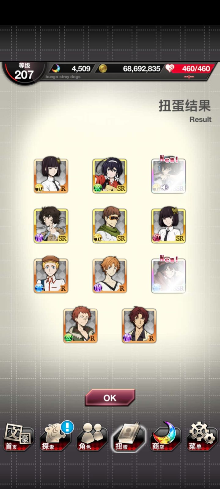 啊啊啊啊啊,今天运气好好,五抽两个双黄,还有三抽一抽一个有了的SSR(≧▽≦)