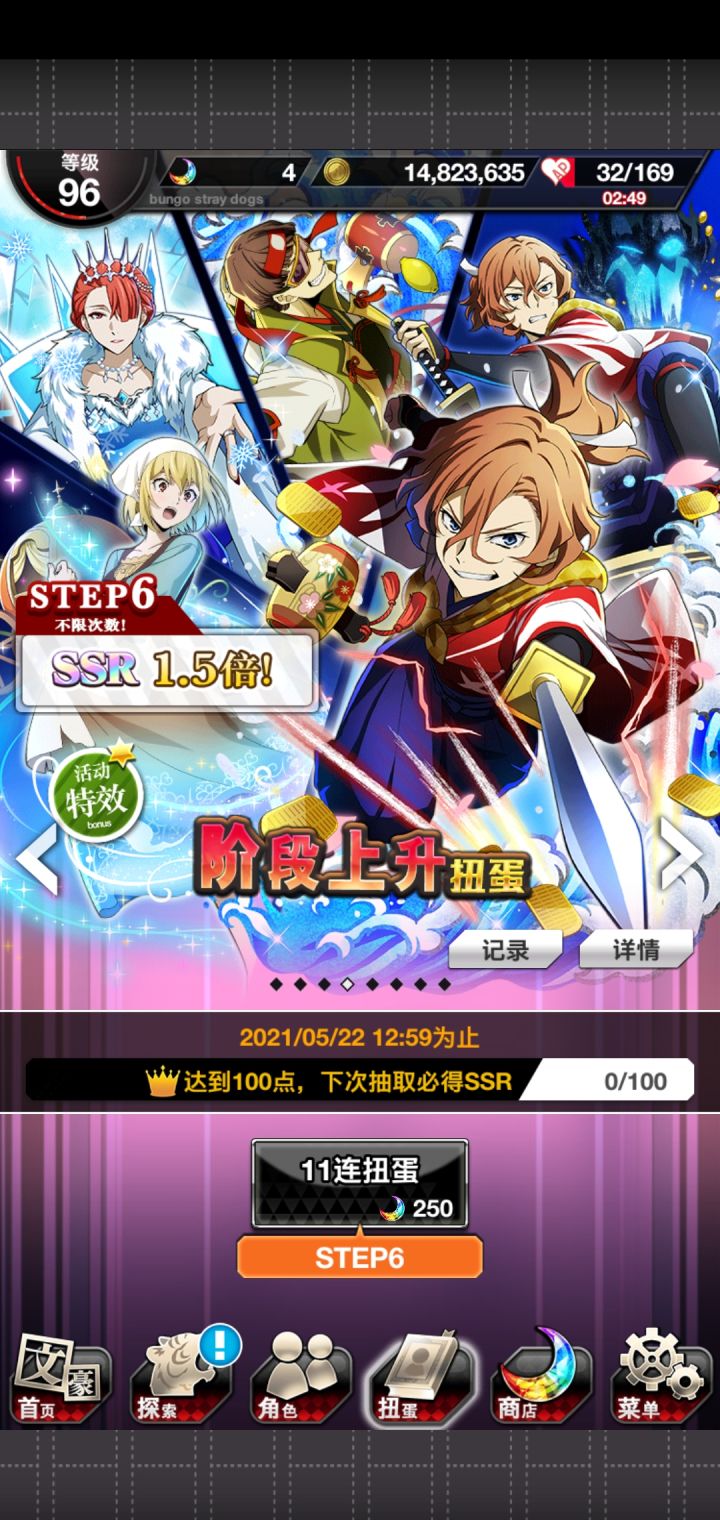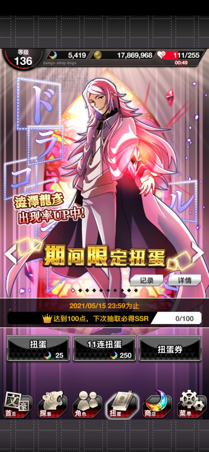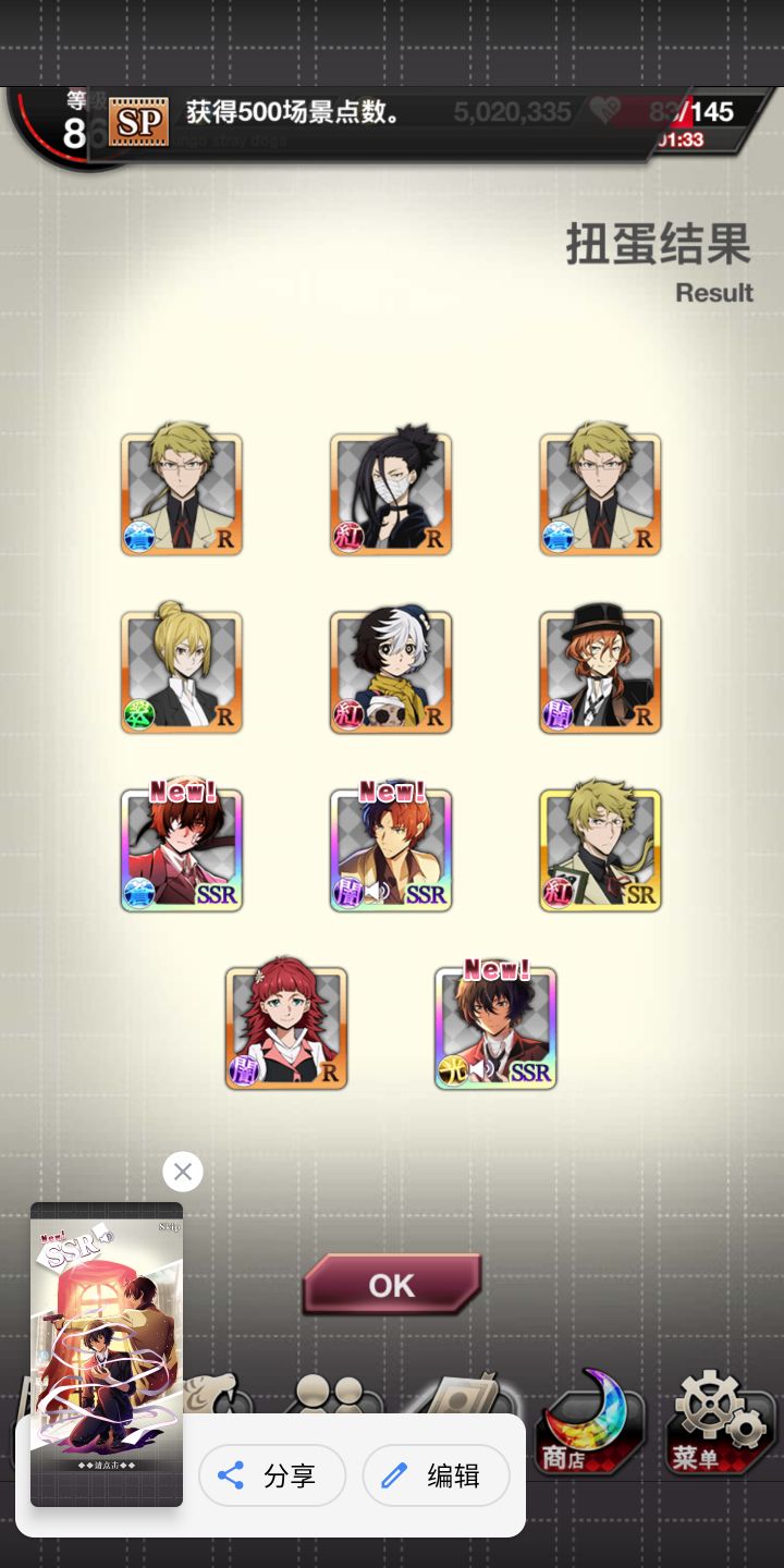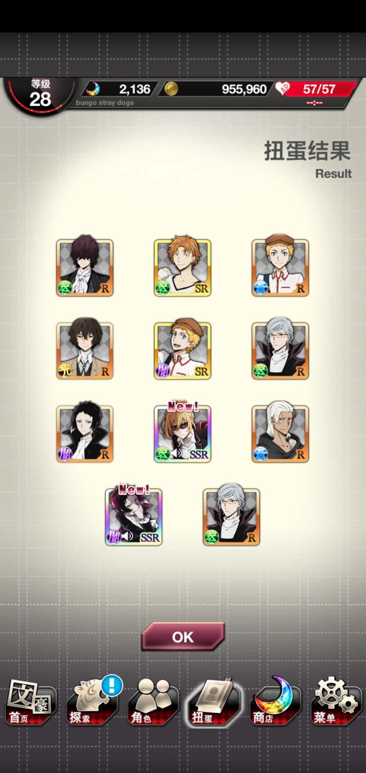 果然太宰会跟着织田作来🤣昨天肝活动的一张必得ssr券+今天和乱步交换玻璃珠的一张ssr券,让我想起之前活动的_(:D)∠)_(平时那当然是重复ssr)