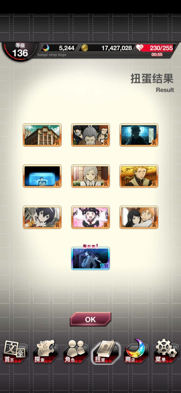 笑死了,5w2就捞到一张芥川,上次砸进去一些,一张没有,麻了麻了。