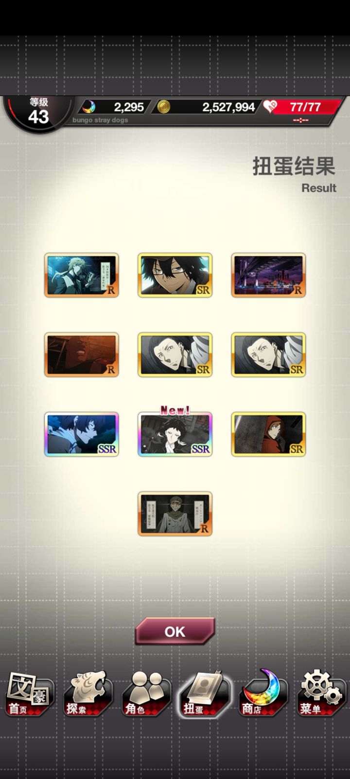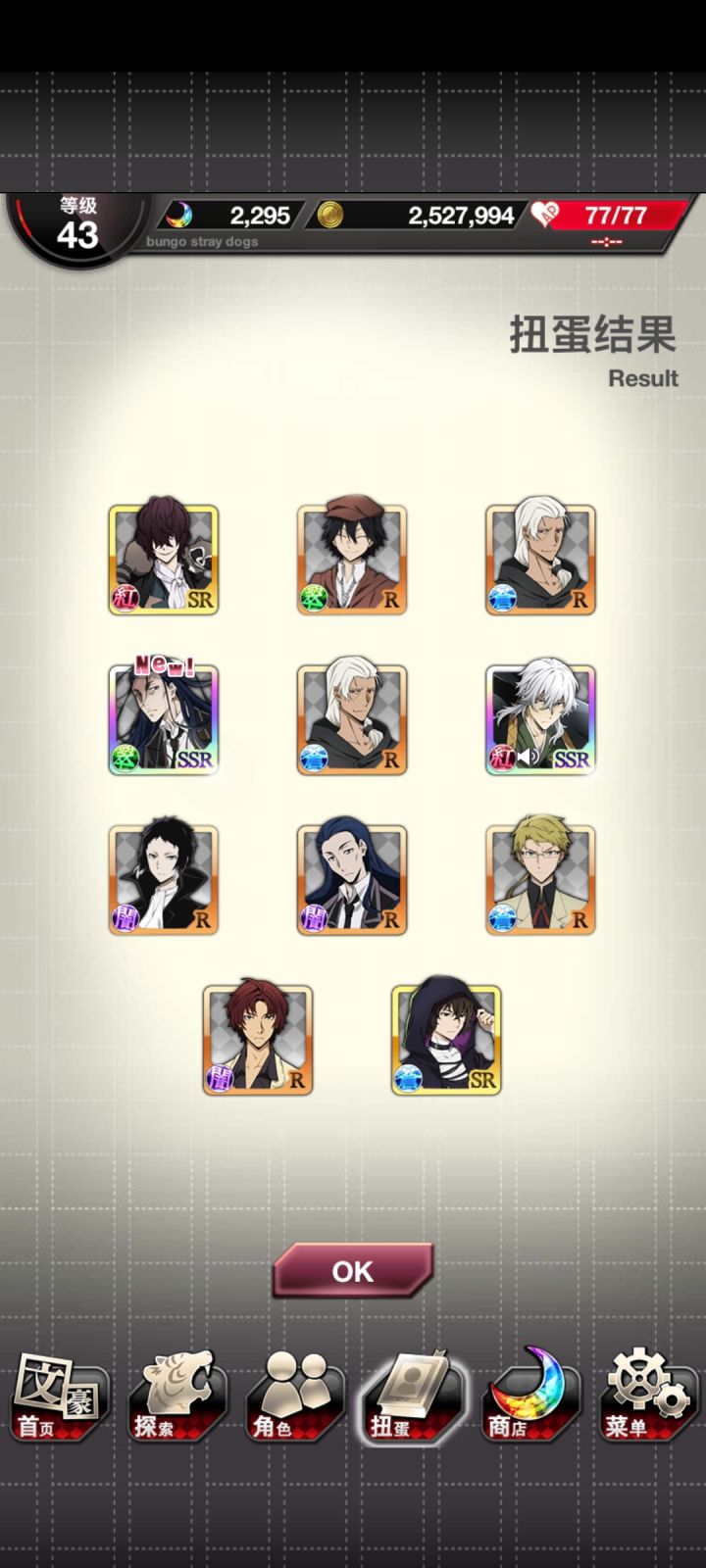 ssr掉率居然有3%,异能石也很好攒,萌新一天一个11连问题不大,还有100硬性保底,完全不用担心捞不到萌新刚玩了三天就有好多ssr其他我玩过的二游里,明日方舟六星爆率2%,爆率逐渐增高,但是没有硬性保底,除了限定有300抽保底之外,常驻甚至有可能全部都歪一直捞不到。零氪的合成玉不是很多,没有活动基本2周一个十连。原神五星爆率0.6%,有90抽硬性保底,但是分大小保底,小保底有可能歪掉。原石