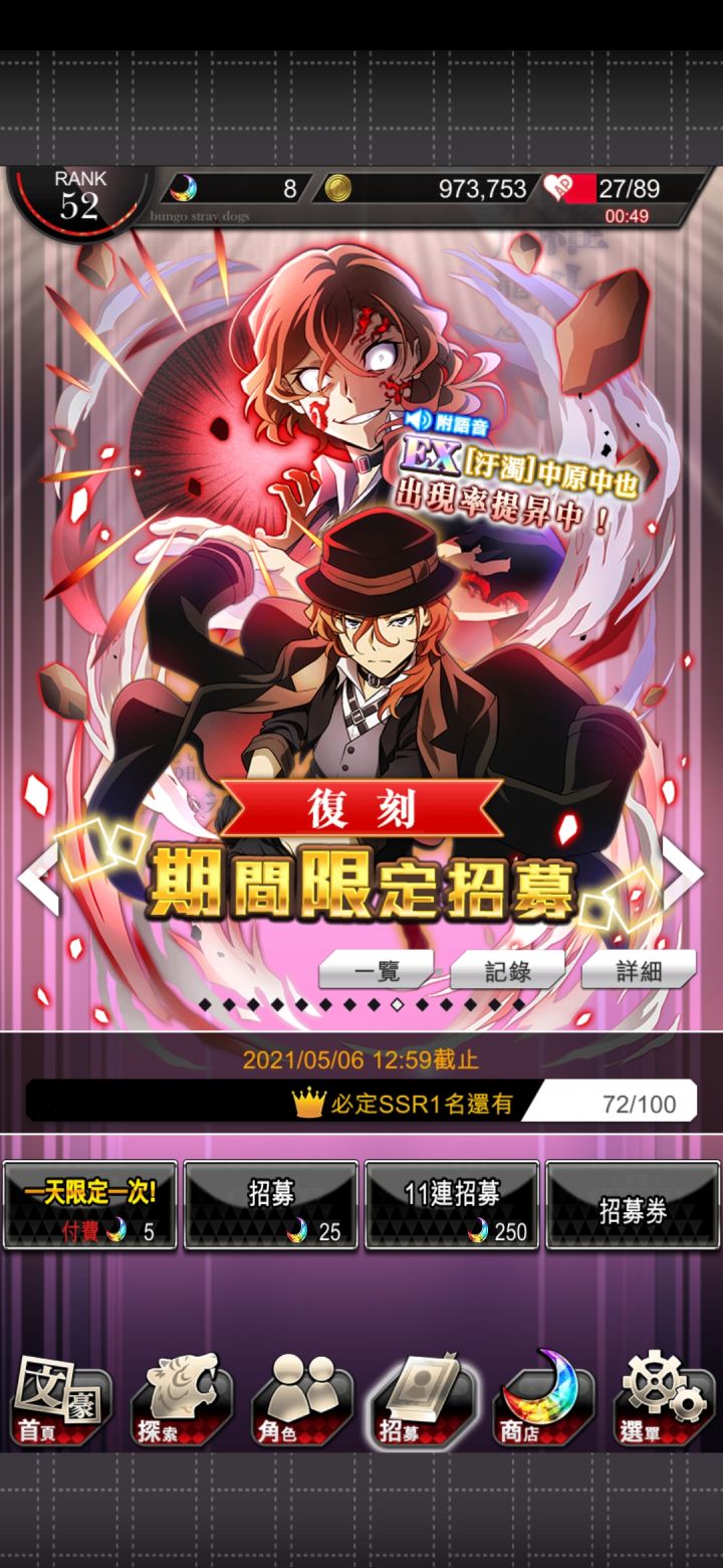 最近挺欧哒,偷渡欧洲成功啦,每抽都是紫月亮最后成功获得中也!