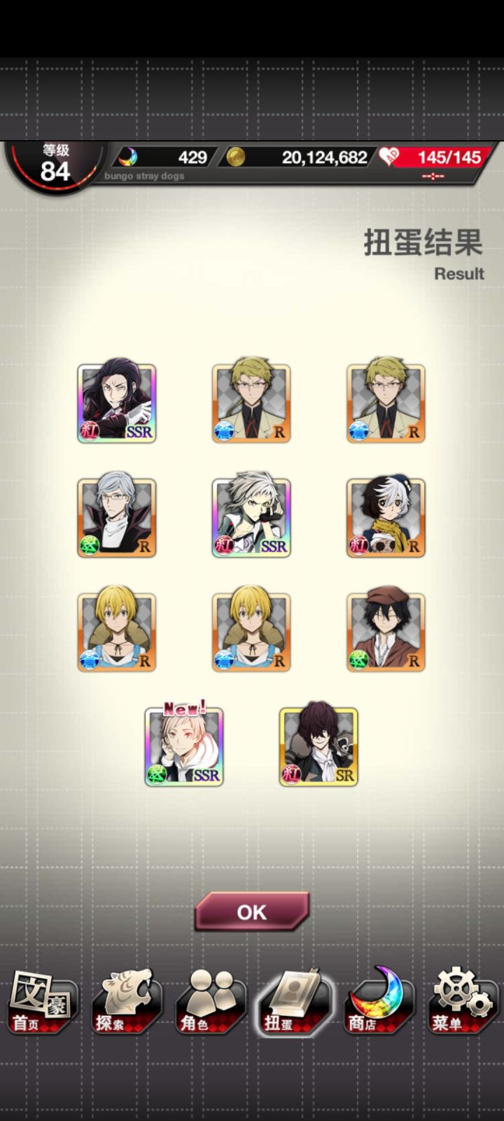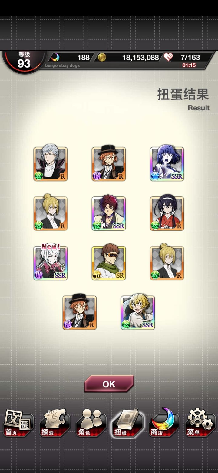 今天免费的十连出了江户川乱步。