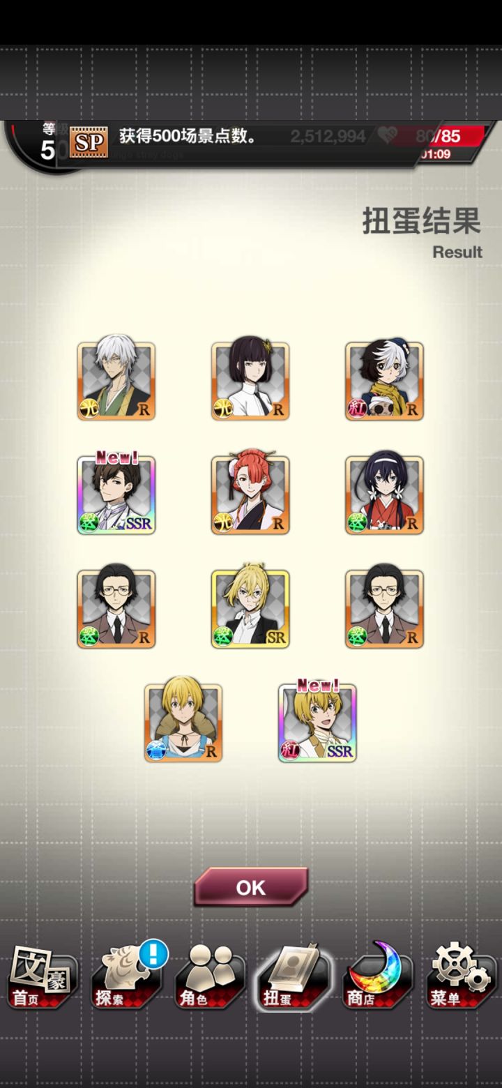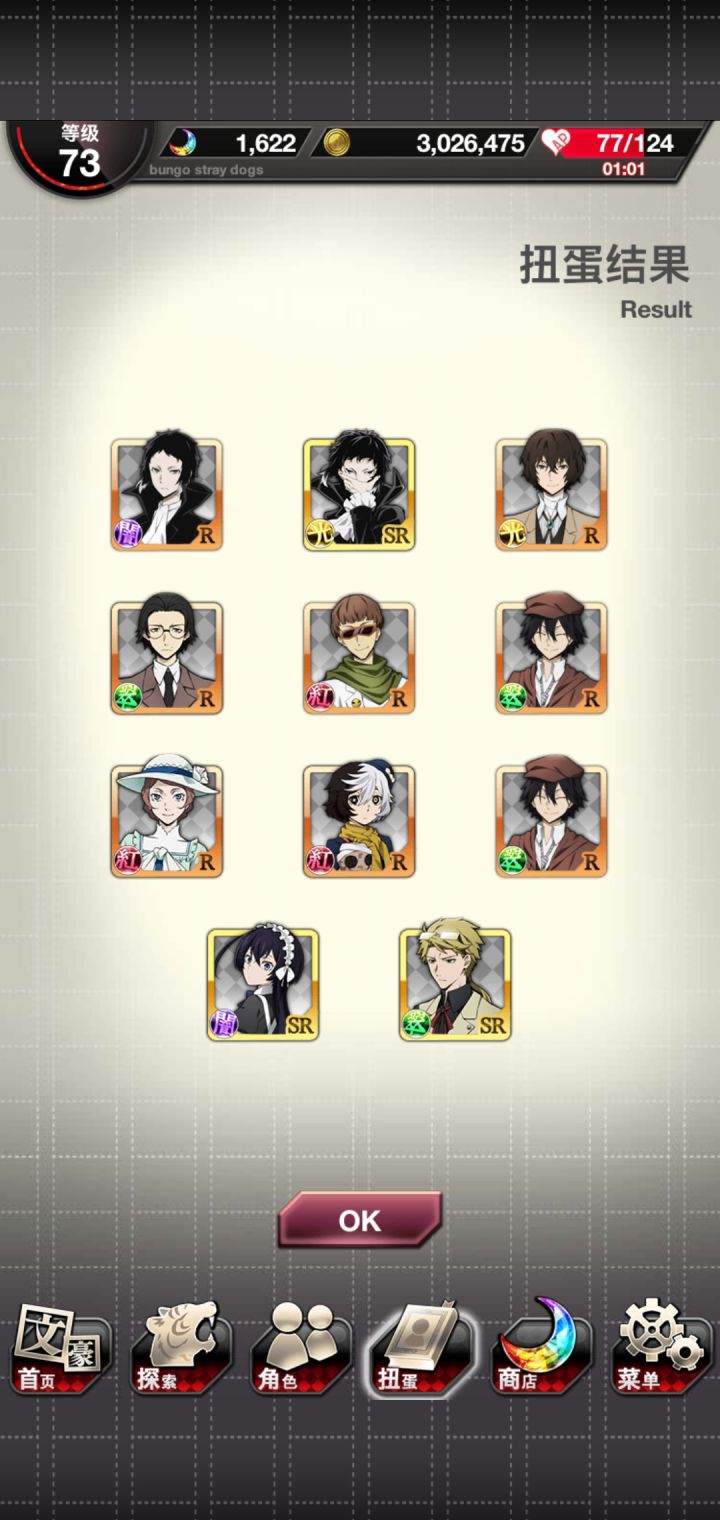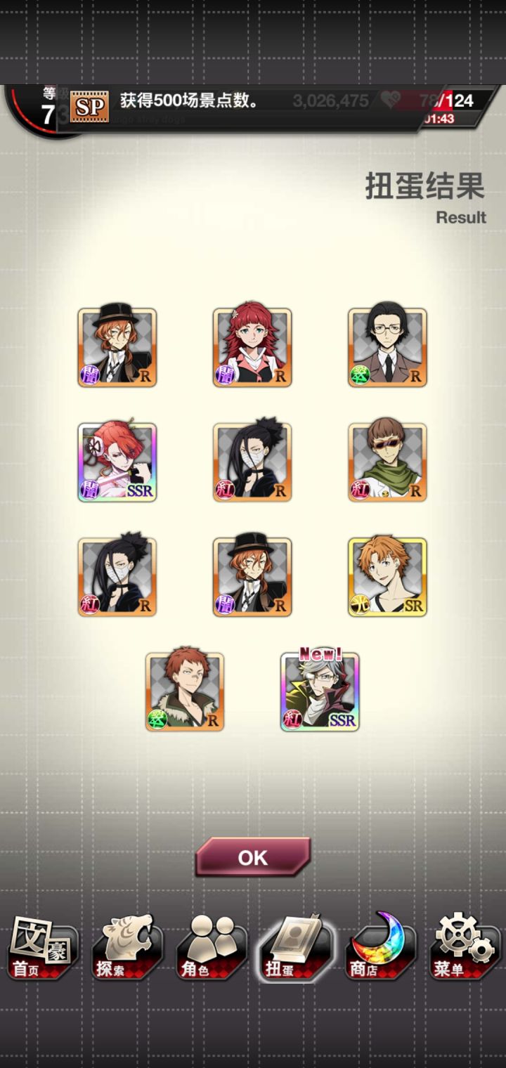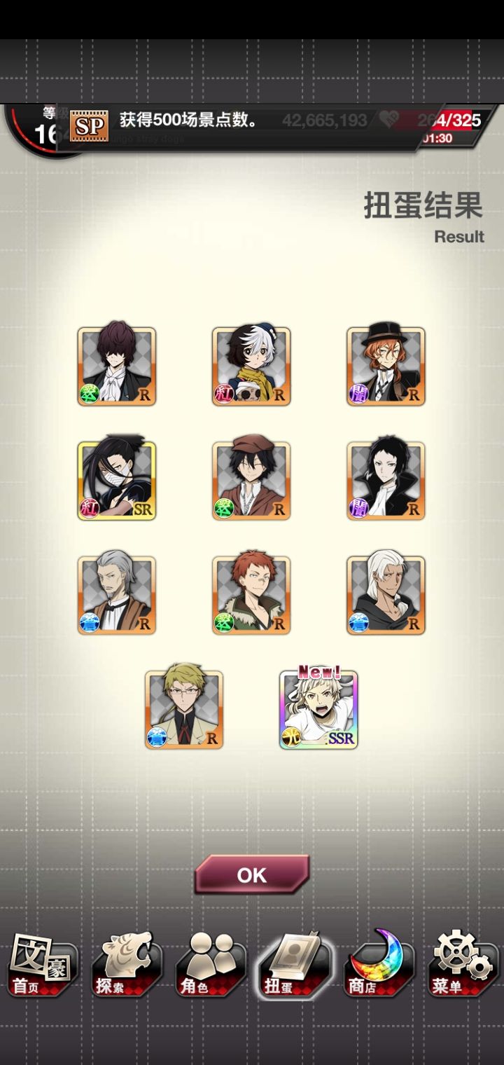 运动会太宰先生我可以!由于,活动点数还没开始,所以为了背景中的太宰先生疯狂抽芥,还好,大号给力到s3两个芥芥,虽然两个小号啥都没出但是我依旧嗨皮,立刻开特效卡面,太宰先生我可(就算只有背景)。接下来就是强肝了。大号还有900多石头,嗯运动会活动还没打,留着下一个宰,砸!