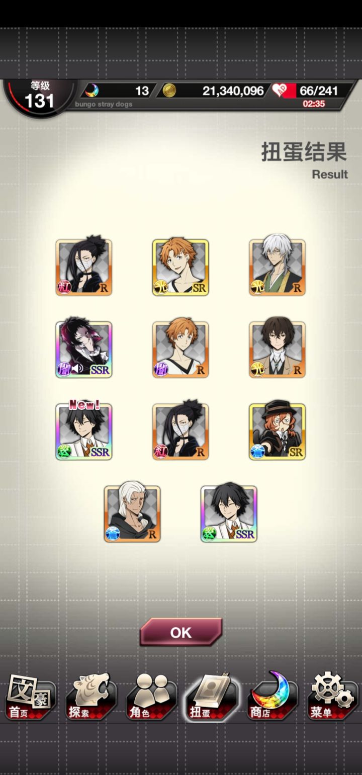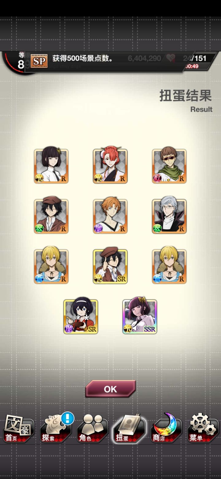 大半夜激情抽卡。t7一轮下来,两个保底,一个普敦,一个社长。麻了,太宰又是强娶。