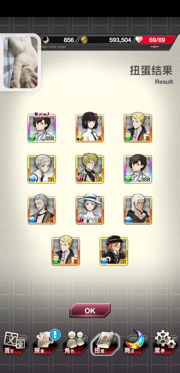 我第一次这么欧过,多亏了朋友的猫猫……视频时随手一抽,本来算好了保底的,结果s2提前毕业,奈斯!以后抽卡拜一拜猫猫。