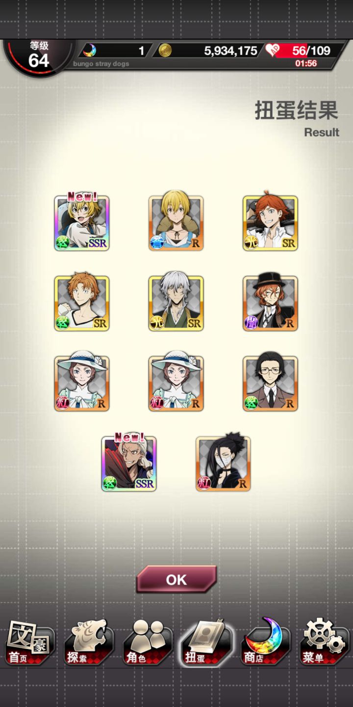 今天!异能节十连给我出了三黄,黑卷第三张就出了爱手艺,有了一张坡,有了两张立原,本轮异能节圆满毕业。最重要的是,必出的限定池我也有了三黄!还是有宰的三黄!今年的运气怕不是透支了……接下来的,大年初一再继续吧。(安详jpg)希望新年可以出乱步(开始祈祷)