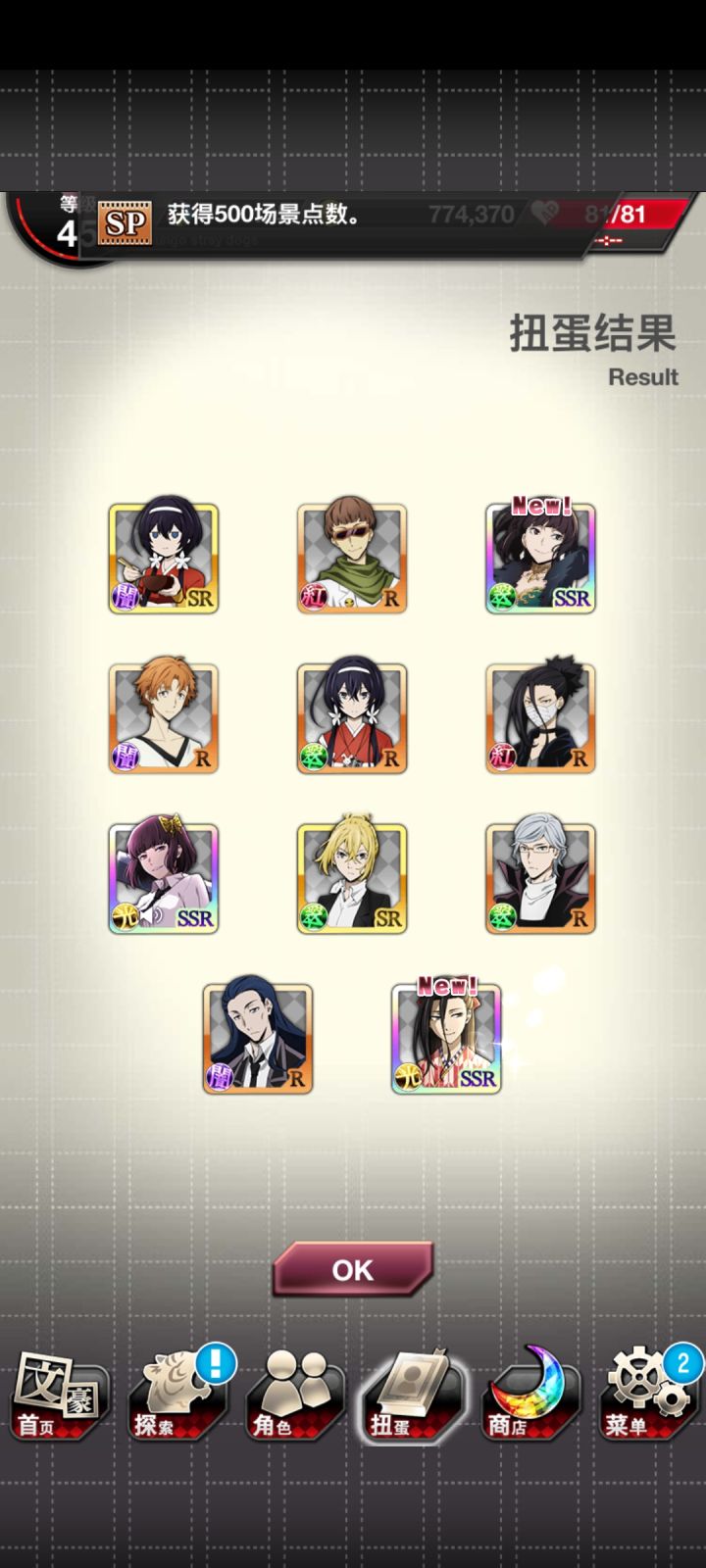 两抽10连第一次出的万圣节织田,忘记截了,这是第二次,啊啊啊啊,宰宰爱我