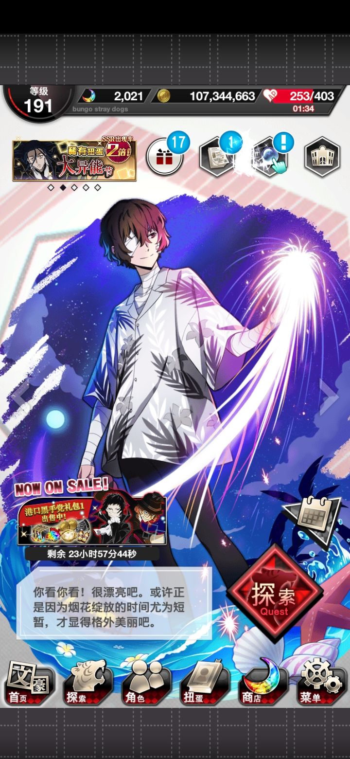 想要抽到紫色衣服的哒宰或者音乐up那个音乐礼服的哒宰。今天才发现可以给好友设置能用的角色,我一直借用别人的角色却没设置给她们我用来战斗的角色,真是抱歉,刚刚换上去,希望我的好友能够看到也给他们推图提供一点帮助,可惜测试服不能聊天,不然我就直接留言给他们了。紫衣哒宰可以把球全部变成蓝色,音乐哒宰加buff,纯蓝表示这两个真的搭配我目前有的两个纯蓝的角色【坡跟小治】无敌