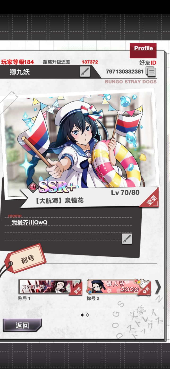 是中也厨,由于想看懂剧情,来到国服,我坚信总有一天我会有中也的ssr卡乌乌,求一波活着的好友(不是在骂人,主要是看见助战全是一排2级的r敦敦)已经挂着本期活动的加成镜花了欢迎大家加好友教教我(?)