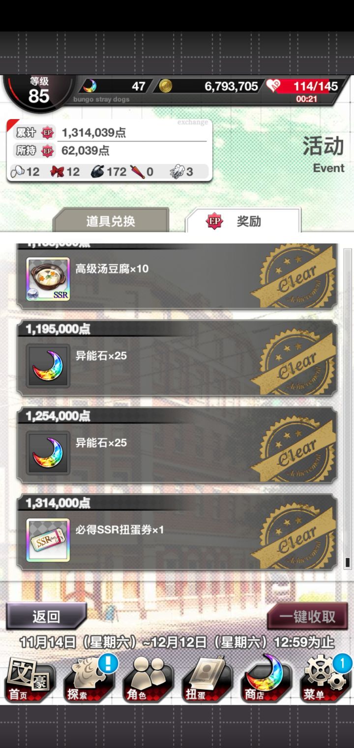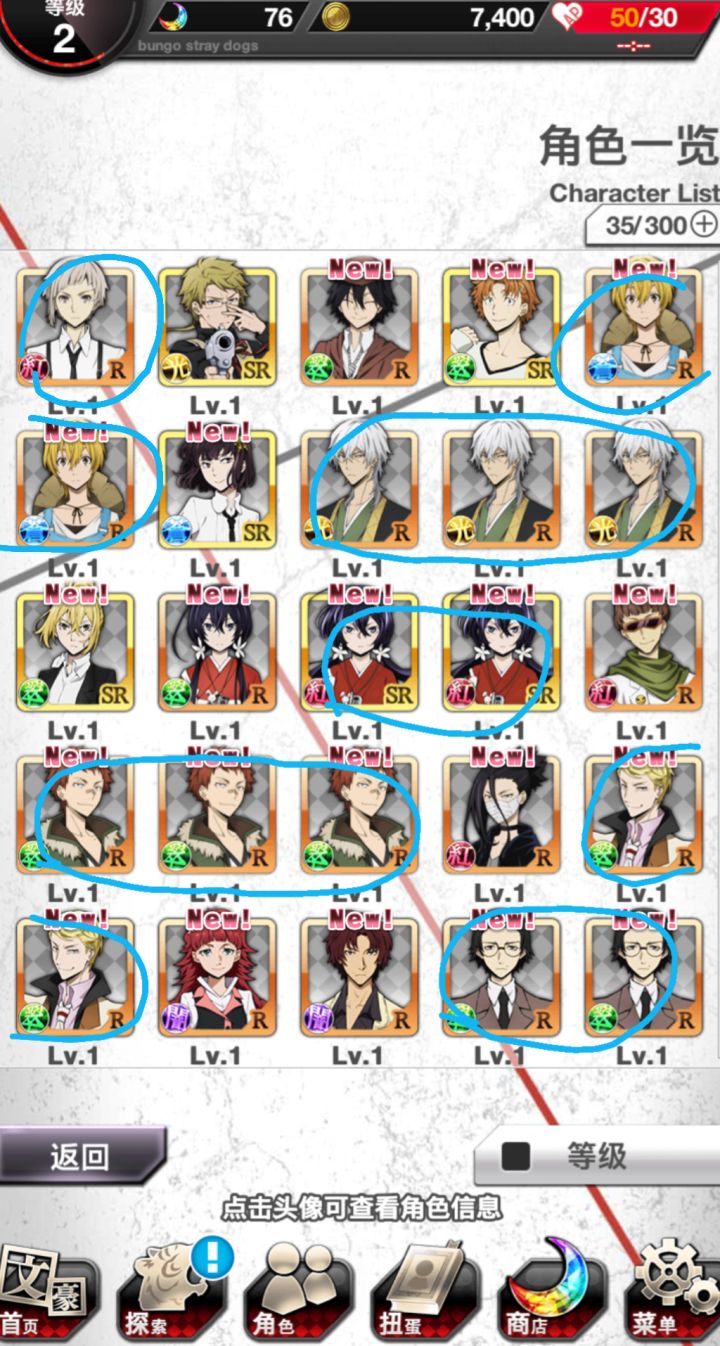 重复的角色能用来做什么,只能卖掉换金币吗?三个社长、两个镜花、两个敦、两个贤治……掐指一算,我与武侦有缘~希望大家能来分享游戏经验、解答常见疑问,比如说月亮颜色代表什么、抽卡前先沐浴更衣会不会更欧~(出现了!传说中的厨谁没谁!一只宰也没有1551)