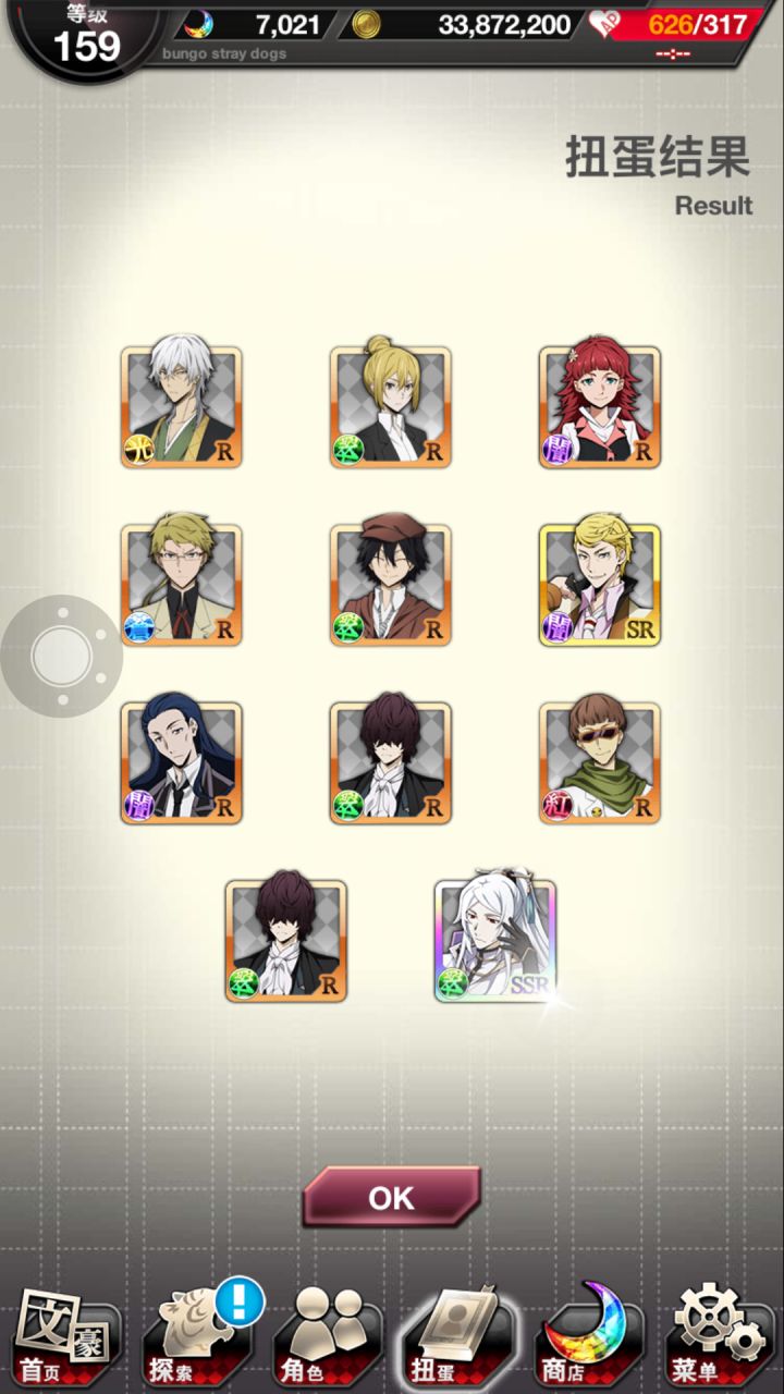 出来一堆宰宰,一个中也都没有SSR还重复了刚领的石头一下就没了