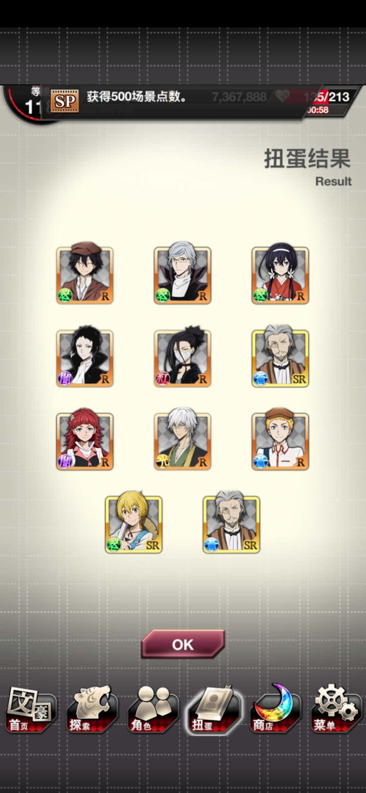 嘶,心痛,看到三人同行图去抽卡,追忆宰S5抽完了,就只有一个新的SSR普卡安吾,没有宰,呜呜呜π_π。然后去抽下载量池,又是有的π_π啊啊啊!葡萄你别再来了,呜呜呜π_π