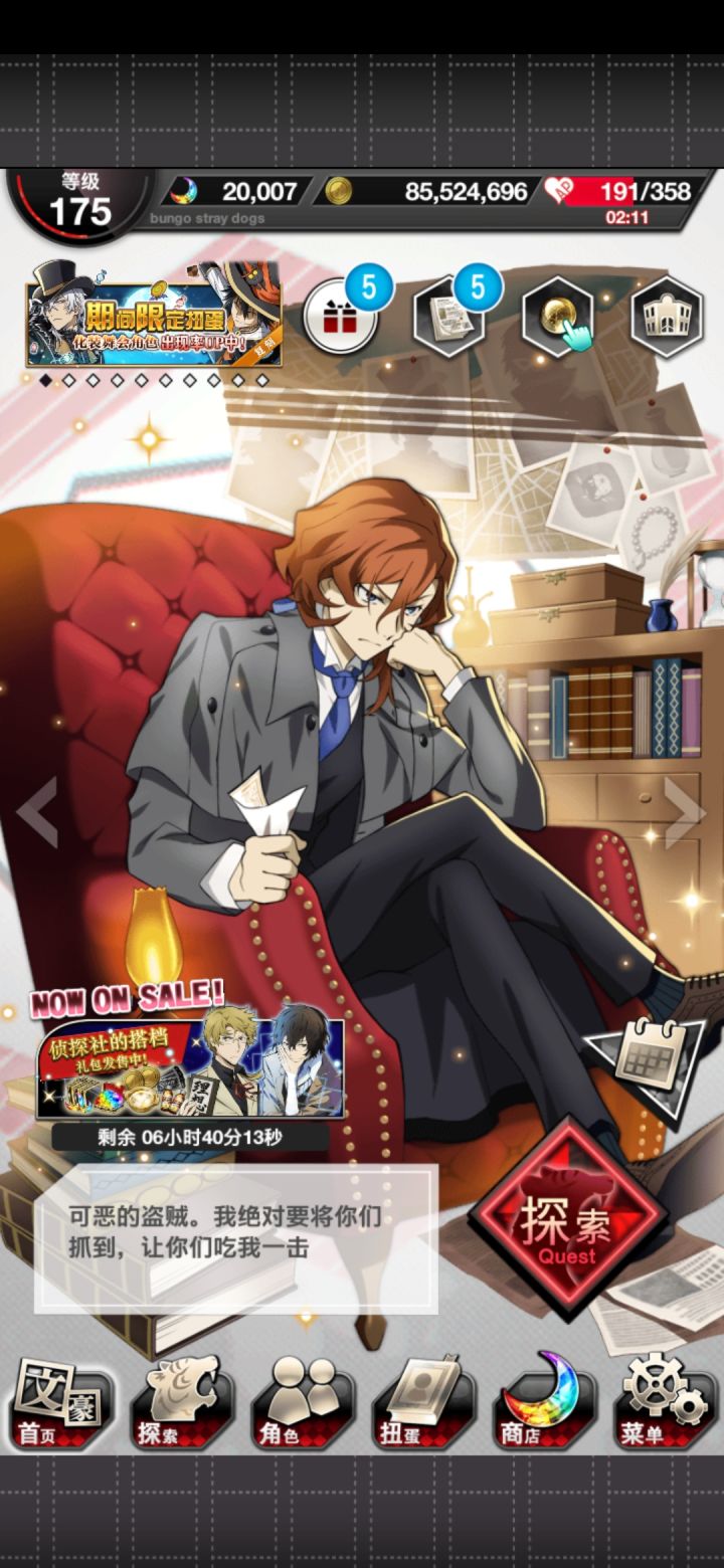 下载不了了www,因为我妈把它删了我想下载回来但是发现下载不了了www,这个游戏就是文野原著粉来玩比较好,后面兴趣会慢慢消失,所以没有什么有特别想要的角色的活动的话最好还是休闲玩一玩就好了,记得重新看看漫画或者番剧www……😢