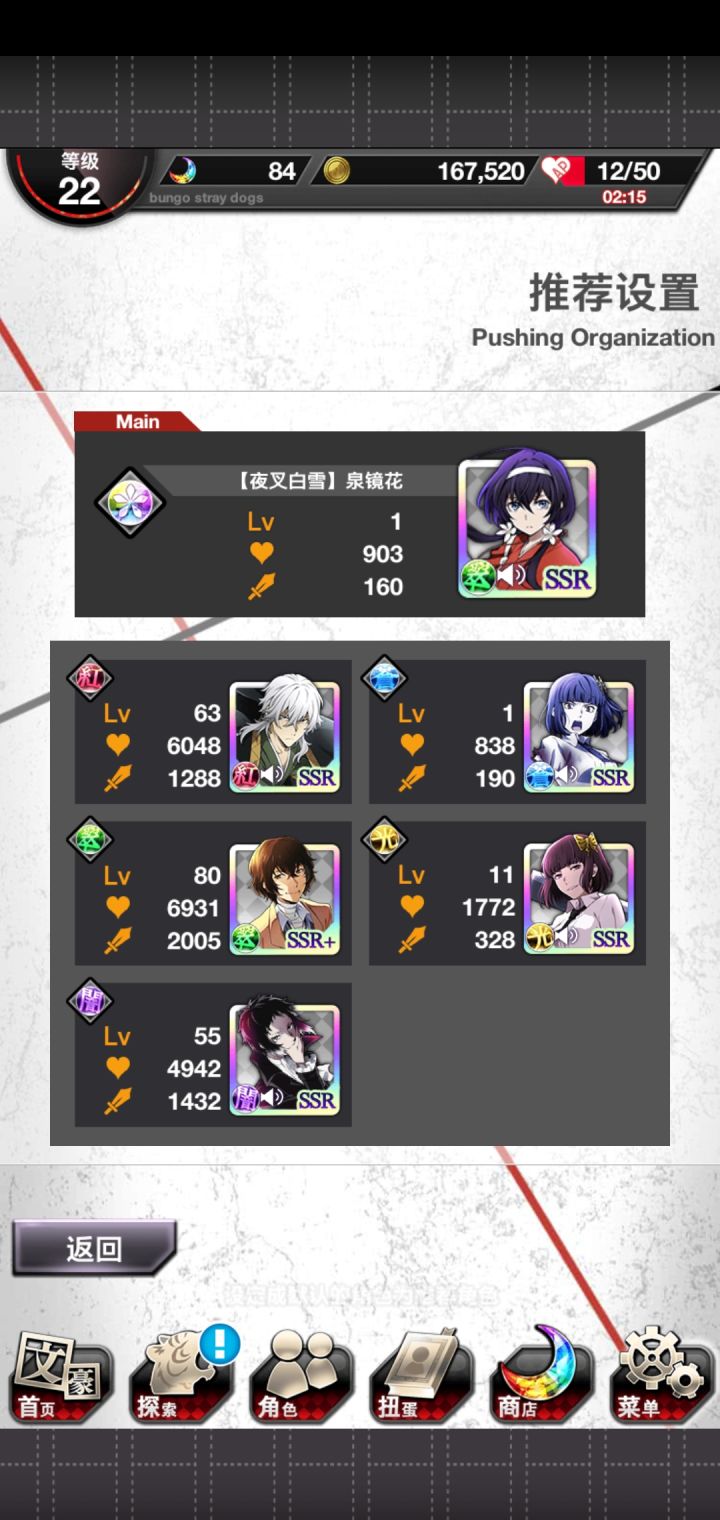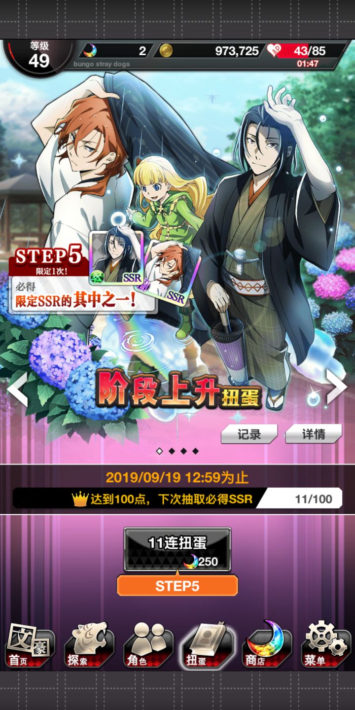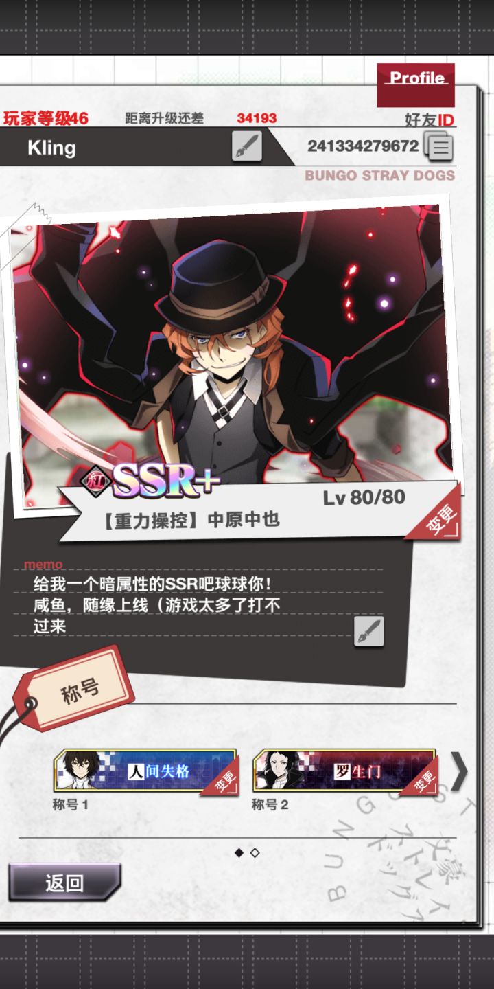 咸鱼肝力的学生党很无奈,虽然平时要上课但是还是会尽量跟上活动进程的。这里宰厨/双黑(新旧),球球有晶子小姐光普SSR的各位加加我叭!顺便,上个卡池抽了两千石头都没出宰敦的我现在正在崩溃边缘徘徊(流下了非洲泪)