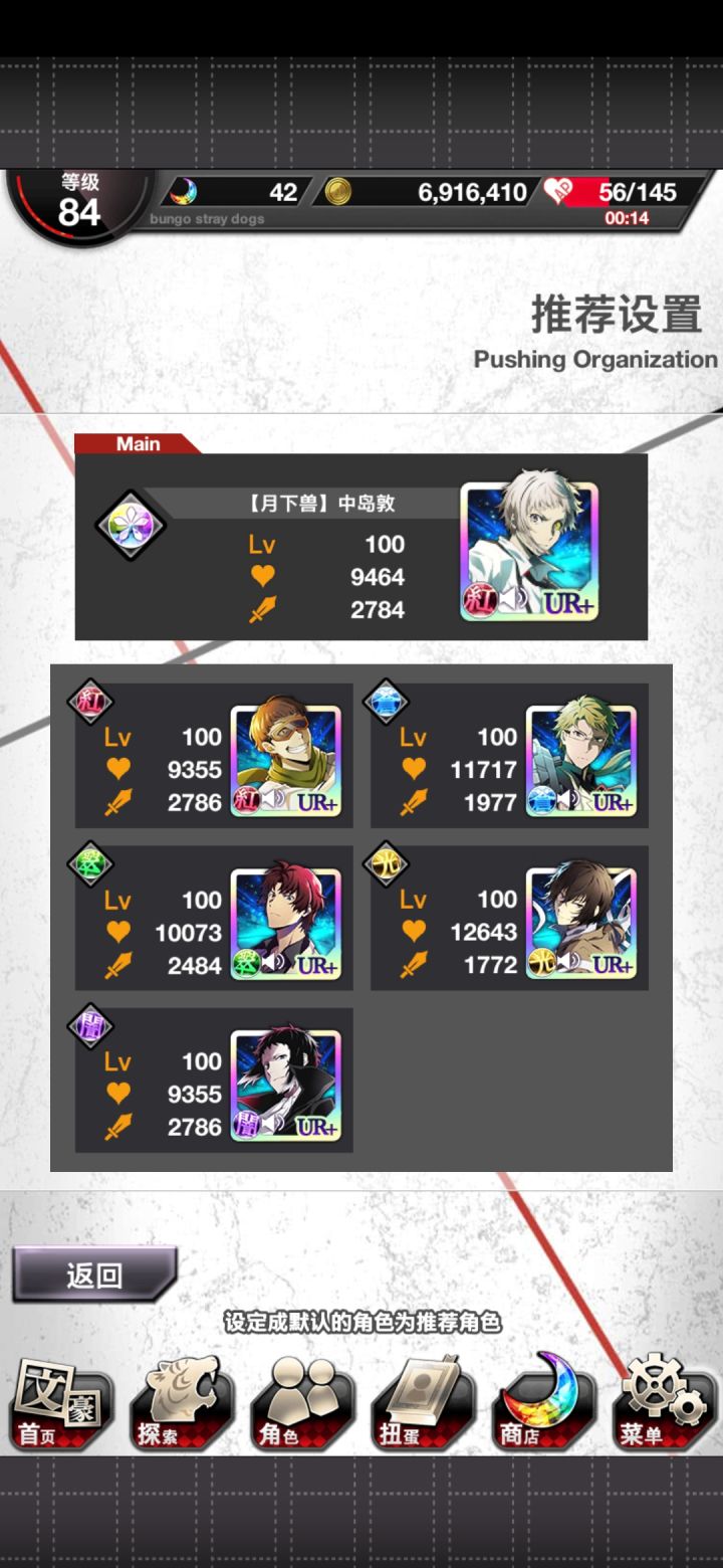 刚入坑两个月的萌新,阵容如下图!虽然有防沉迷但是休学人保证每天上线!活动也都会肝!主要求有童话樋口的大佬加一下( ´ρ`)救救孩子_(:з」∠)_