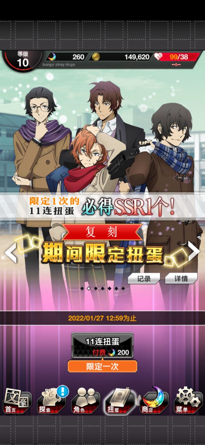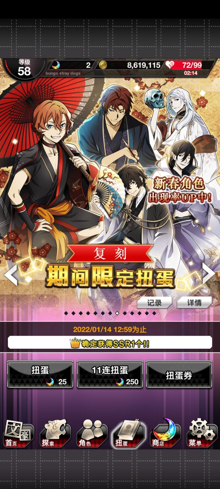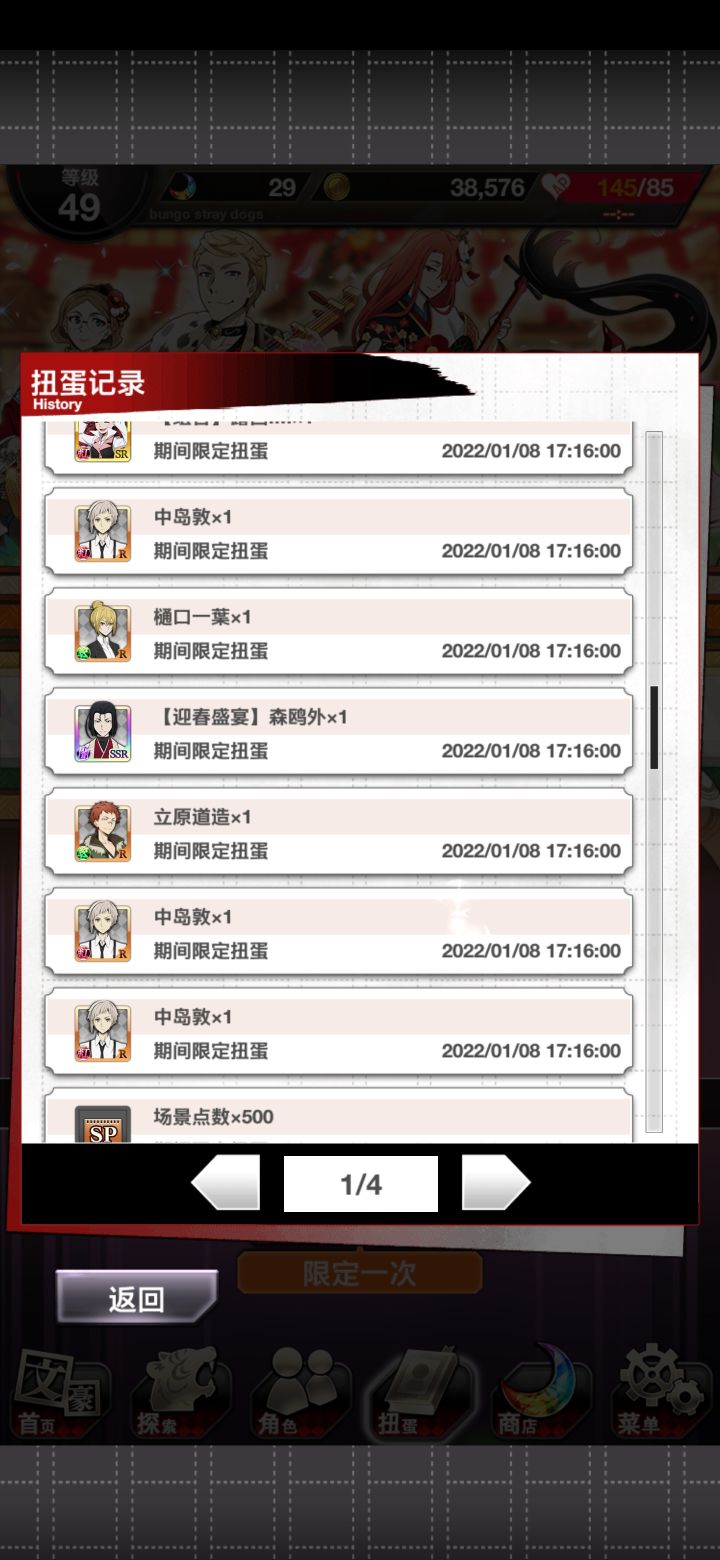 100抽的保底歪了是不是过于离谱...与谢野的技能都已经升到满级了啊啊啊啊啊,这次的活动没抽到一个想要的,又得攒很久的石头了