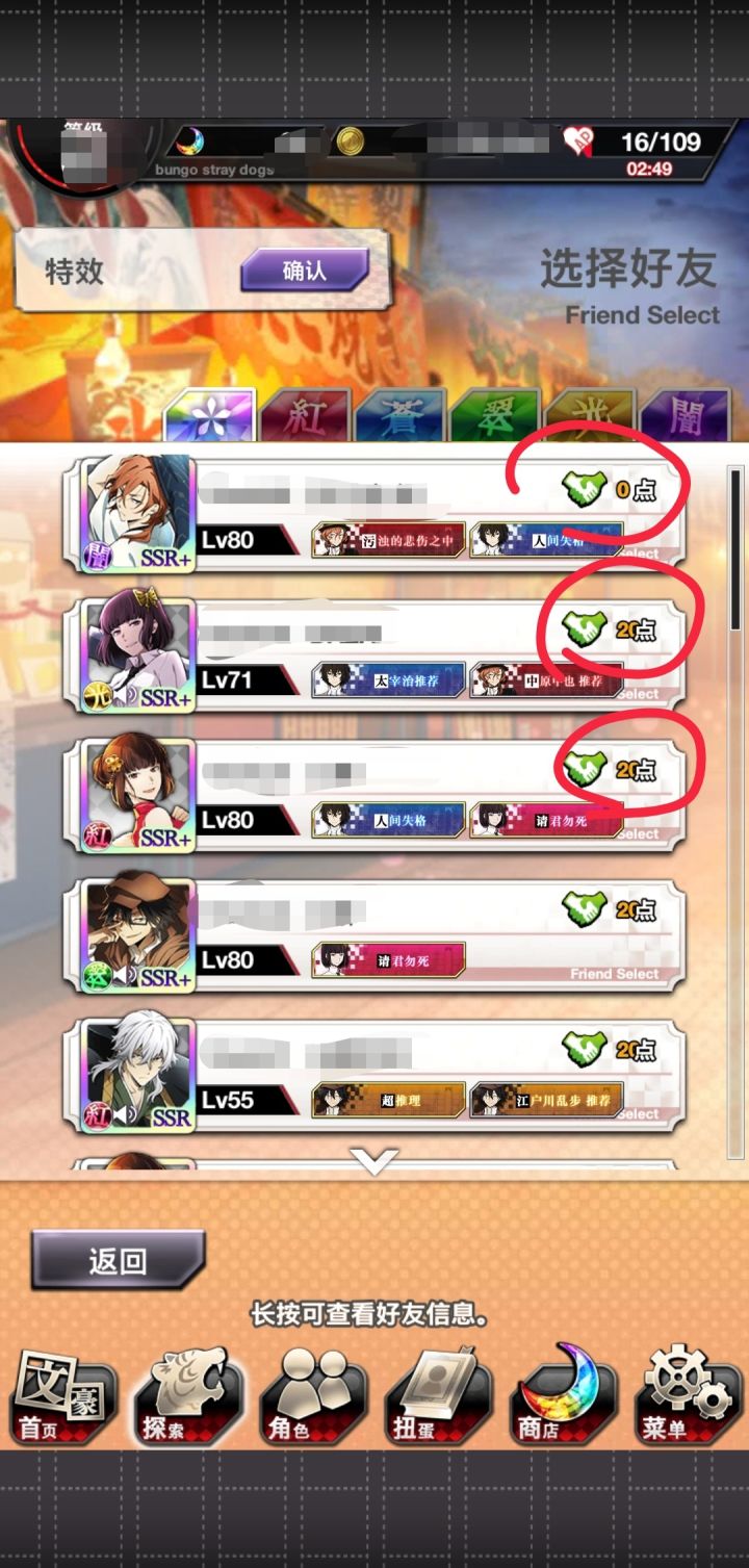 对于好友和非好友的区分着实不明显…只能靠20友情点和5友情点区分,能不能给搞个明显一点的区分,比如说好友那一框加个阴影下标,非好友就啥都没有这样的另:在活动期间大海捞针一样找活动卡助战实在是太艰难了,能不能请官方稍微人性化一点,在助战界面给活动卡加个星标【就像组队界面那边一样】