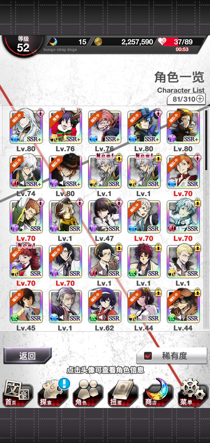 刷了挺久掉了两个社长。一开始角色没练对加上太非了,19年12月入的只有三十一个ssr