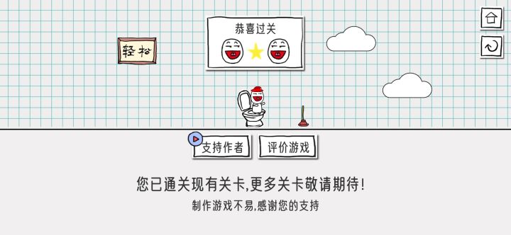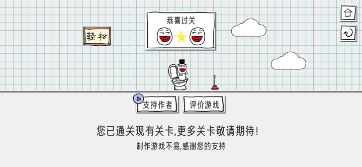 玩下来,有些关通关的方法真的出乎自己的想象,比如拉长条啊,啥啥啥的,画面感也很不错,没按时坐到马桶上,💩落的声音也很符合实际总之,还不错的一款游戏,无聊的时候玩玩半个多小时也就过去了