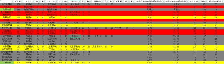 售价301 需要两个百合花 两个蒲兰花 一个怪怪糖豆 种子成本118 售卖原材料可获得90的利润 如果做成私房菜可以获得183的利润 相当于每颗种子可以获得36.6的利润取代奇异毛毛豆成为优先做的私房菜红色:优先做黄色:有材料可以做绿色:适合快速完成订单(不考虑收益的最高性价比)