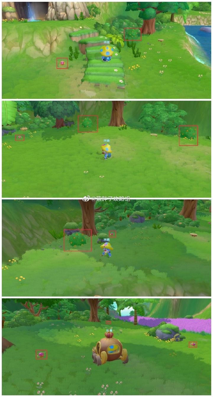 【红色浆果】主要产出:浆果丛林用途:餐厅做菜、可以每日完成采摘任务。刷新时间:1小时。【橙色浆果】(图一、图二)主要产出:浆果丛林、爱心广场、阳光牧场、开心农场、小镇门口用途:餐厅做菜、可以完成每日采摘任务。刷新时间:1小时。【白色浆果】主要产出:雪山(傍晚6点以后才能采摘)注:餐厅做菜。刷新时间:每株五次【黑色浆果】主要产出:前哨站(傍晚6点以后才能采摘)用途:在研究