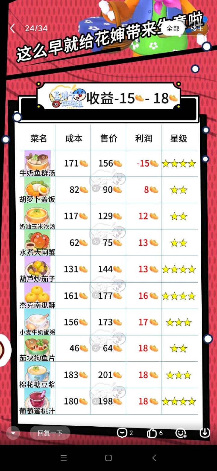 【6.8 1:30更新 特产菜份均收益排名;香蕉牛奶,204》苹果糖,183》葡萄甜浆,168》草莓旋风,亏本