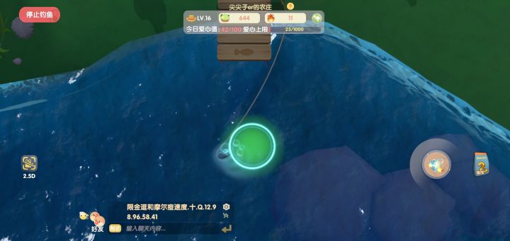 用下文的方式可以实现100%钓到🐟哦。推荐用这个俯视角度,方便看判定。是否能钓到鱼是根据你收竿的时候是否在绿色实圈内来决定的。一定要实圈,周围的波纹圈都算不中。🐟会游挺长一段时间才会跑掉的,完全能逮到它跑进圈子里的时候。还有就是鱼饵只和钓到的🐟的品质有关,比如你想钓能拿去和大卫换东西的🐟,就要用金(高级)鱼饵。如果你只是来钓别人的特产的。最好用普通鱼饵,因为所有的特产🐟都是1⭐稀有度。有所