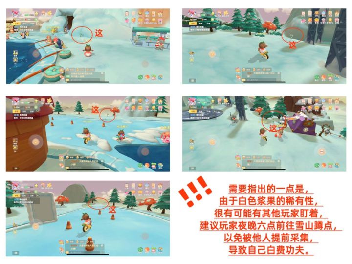 ⚠️⚠️⚠️注意:首先笔者不确定三个晚上的满天星刷新点是否都一样…但大概率一样啦!就算不一样也大同小异不是 首先通过2张大图我们知道了满天星花拾取的4个地点:城堡🏰雪山🏔️浆果丛林🍓阳光牧场☀️⚠️一个地图有6个城堡🏰的很好找 就不贴图了🌝🌚其实是因为笔者没截但的确很好找!城堡的6个我找的很快浆果丛林🍓入口有1个过独木桥还有5个 然后接下来是雪山🏔️入口处往冰冻的池子