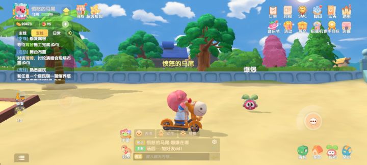【爆爆在哪】首先跟着任务追踪来到开心农场。接着去阳光海滩,海边。爆爆是一只小拉姆。如果找了半天找不到,点击右上角地图,地图右下角有个刷新的标志点进去换一个绿色的服务器。加载成功后小拉姆就出现了。