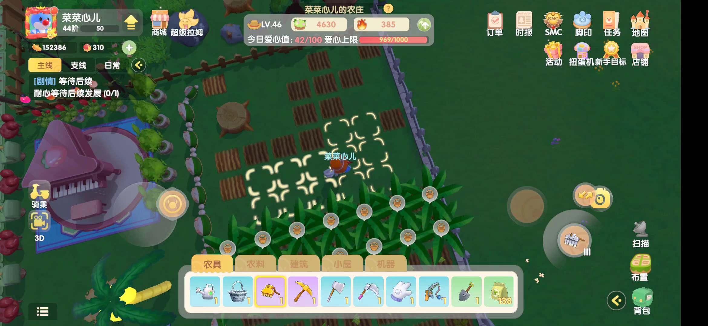 ①场景转换太慢,然而任务很烦一直让你来回转换。②农用道具解锁是用脚规划的吗?,可以解锁土地当时却不能砍掉大树跟大石头。最离谱的是金色的道具解锁特别特别晚,只能说牛逼。你说机器解锁慢也没关系,但是你这手动道具解锁有的时间差距太远了。③餐厅只能在线了才能有收益,这个牛逼,绝了。④牧场进出太麻烦了,我看见那些房子都不想进去。绝了。⑤有了邻居以后,每次回家都要多有一截路,绝了。⑥机器的解锁就不能