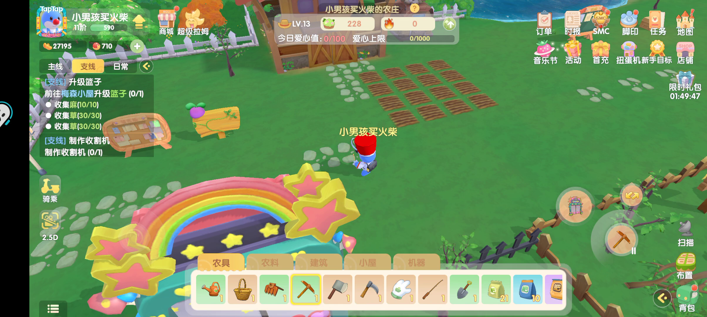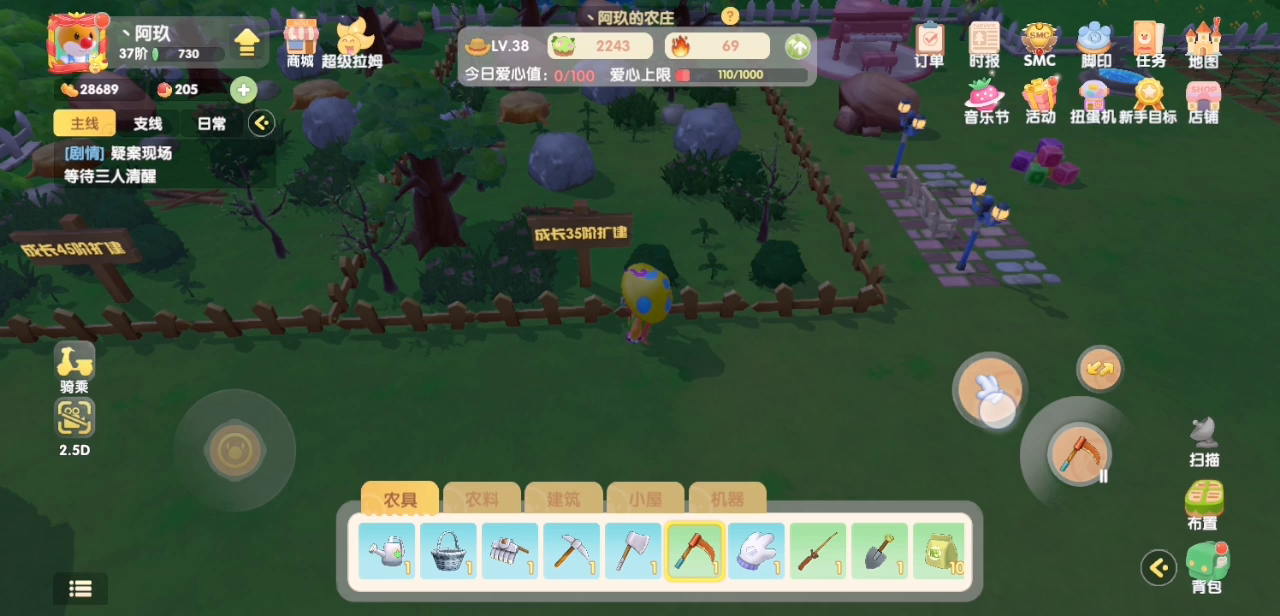 就我个人而言,不太喜欢装扮,只想种地浇水收集,动物我也不介意养一堆。结果这个限量,那个限量,是怕我们这种只想搞屯物的这些人肝的太辛苦?我其实也不反对餐厅玩法,但是n还是限量,真是被搞得无语。顺便问一下空中楼阁这种,上面能不能摆东西,要是能摆,我把装饰全搞天上去,在下面占地方,看着眼疼。就很无语,游戏自由度能不能高一点。还有下雨,下雨就不能浇水,那任务能能不能改一下之类的,在那戳着又完成不