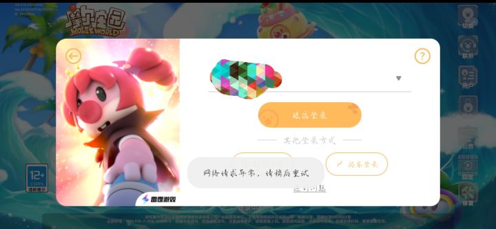 我怎么显示网络异常进不去啊。其他软件都能用,就摩尔庄园不听