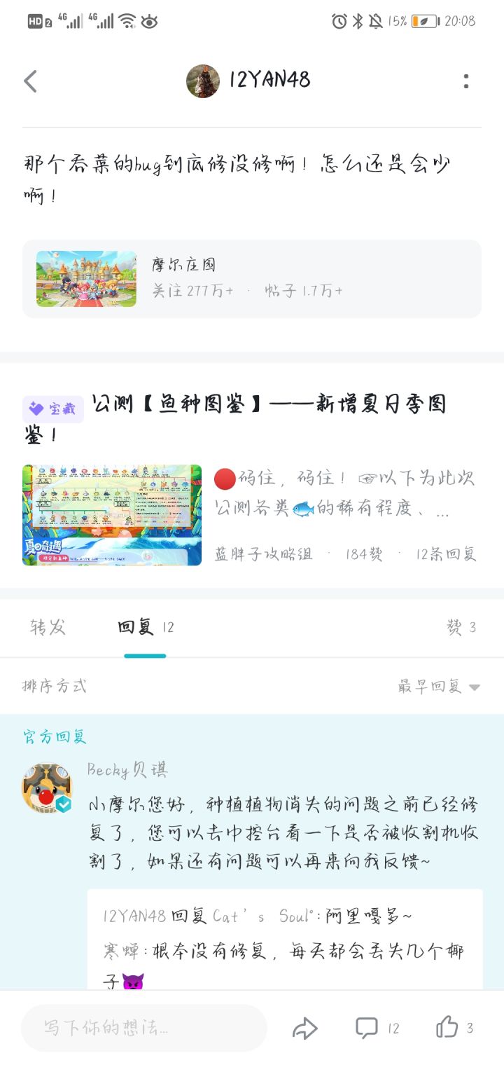我还以为土地吞植物bug修了,原来确实是修了但是没修好。前面看到官说修好了我还信了呢。晚上又被吞植物了哎。
