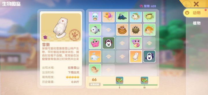 两个中级鱼饵,五个高级鱼饵,三个中级渔网出了雪獭