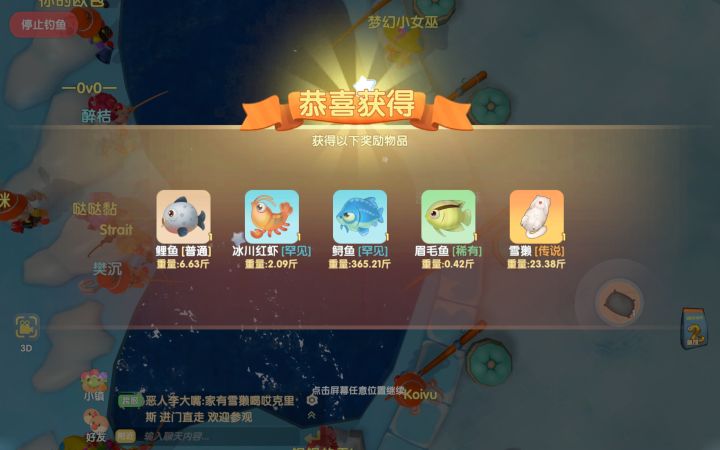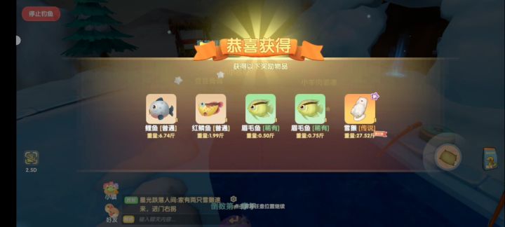 0.01斤的雪獭,沉思。后面两只应该才是正常重量,高级鱼饵,中级渔网,高级渔网,各出一只。