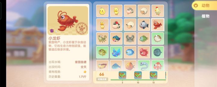 摩尔庄园中,小龙虾可以在家园鱼塘中进行垂钓。小龙虾是家园特产的一种,如果家里的池塘特产不是小龙虾的话,建议前往特产是龙虾的好友家中进行垂钓,垂钓不消耗爱心值。摩尔庄园中,有很多垂钓点,靠近垂钓点后,点击右下角的鱼竿可以进入垂钓状态,垂钓时可以选择使用什么鱼饵,使用的鱼竿和鱼饵越高级,能钓上来高级鱼类的可能性就越高,购买渔网捕鱼的成功率更高但同时成本也较高。收集解锁生物图鉴可以获得智慧值,每种生物