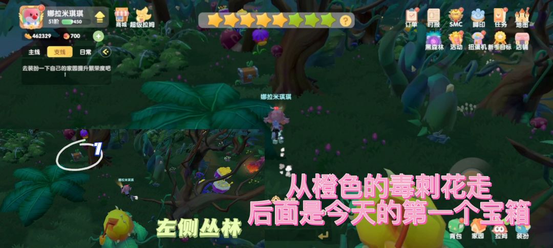 ❗️注:①其中食人花和毒刺花每日获取均为8个(目前2个道具无用处)②全地图固定10个宝箱,每日刷新位置(每个宝箱必得冰刺)③毛毛紫水晶每日获取上限为40个(目前该道具无用处)④有些路可以朝着植物(食人花、苞子花、毒刺花)方向走去攻略:米琪琪