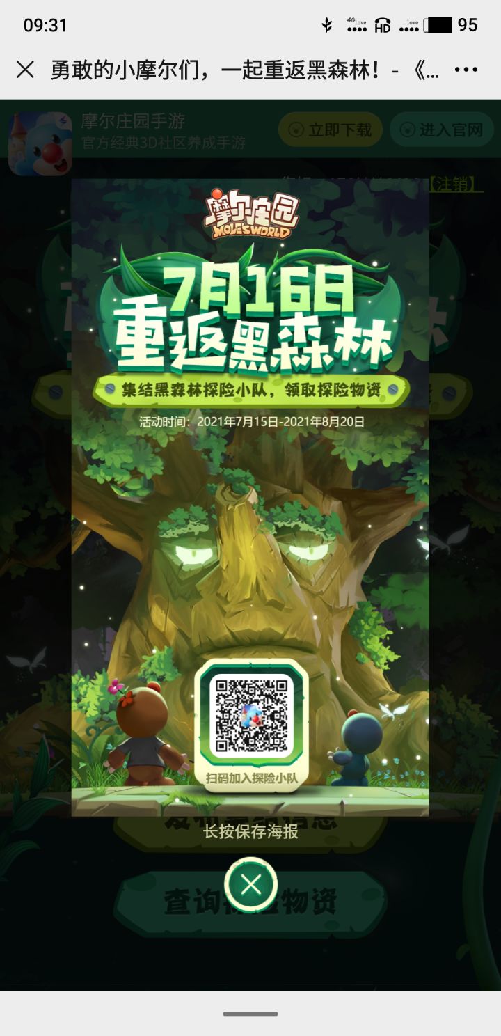 冲鸭冲鸭!摩尔骑士们7月16日,一起重返黑森林!快来加入我的黑森林探险小队,领取探险物资!https://acts.leiting.com/mole/202107/team/?shareId=621e4bd811f75ece8f9df1d1904c41f8